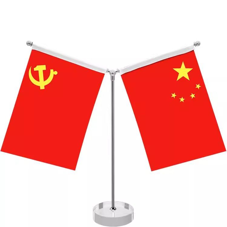 金色Y型党旗国旗摆件 小红旗办公室桌旗会议室桌面旗杆旗架桌旗座小旗桌上桌子旗杆办工国旗座台旗中国桌旗