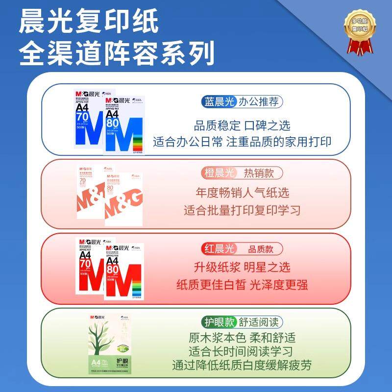 晨光A4纸打印纸复印纸70g白纸80g单包500张加厚双面打印白纸打印机a4纸草稿纸5包装整箱木浆办公画画用品包邮