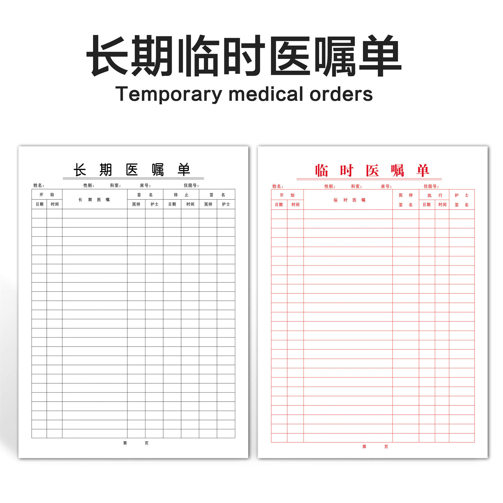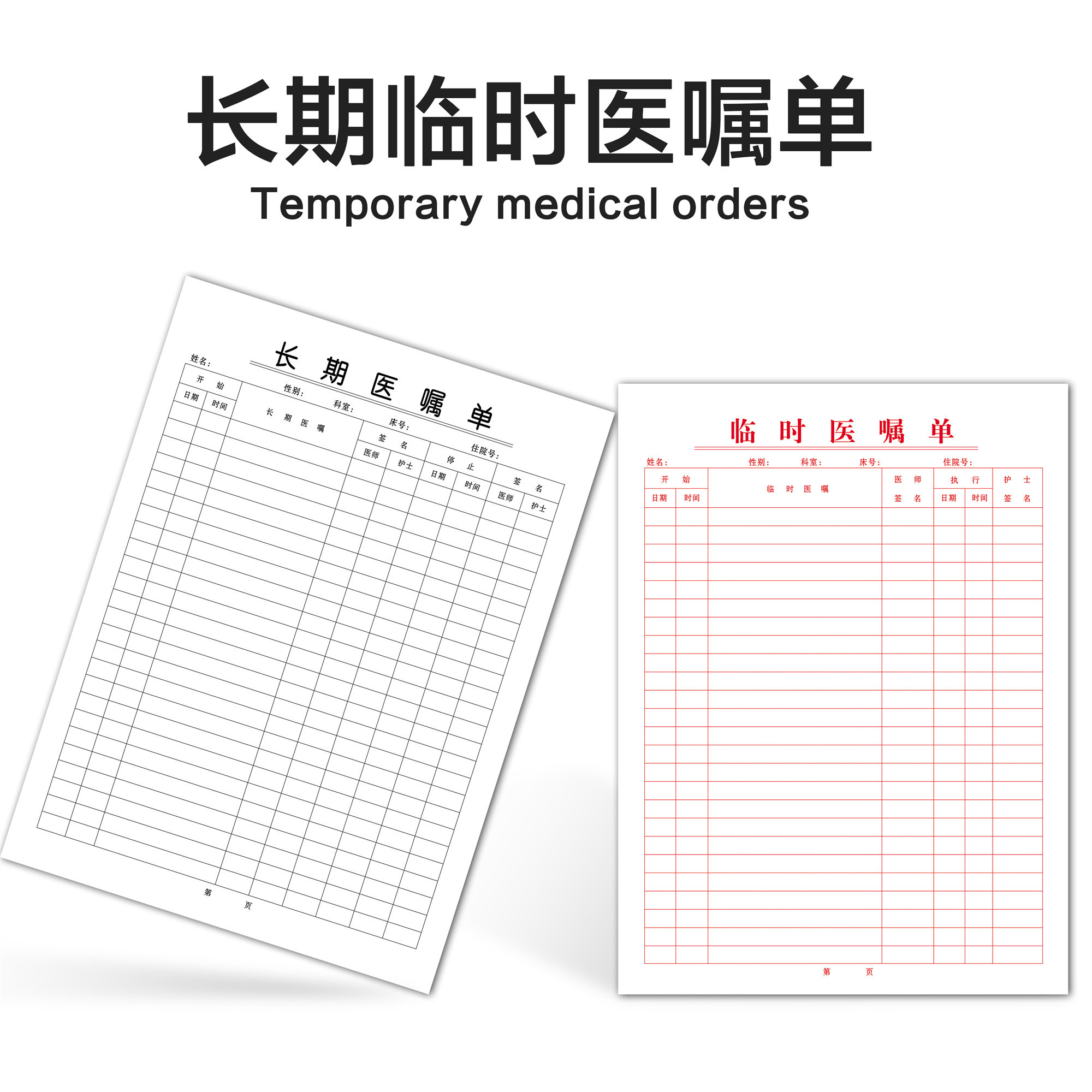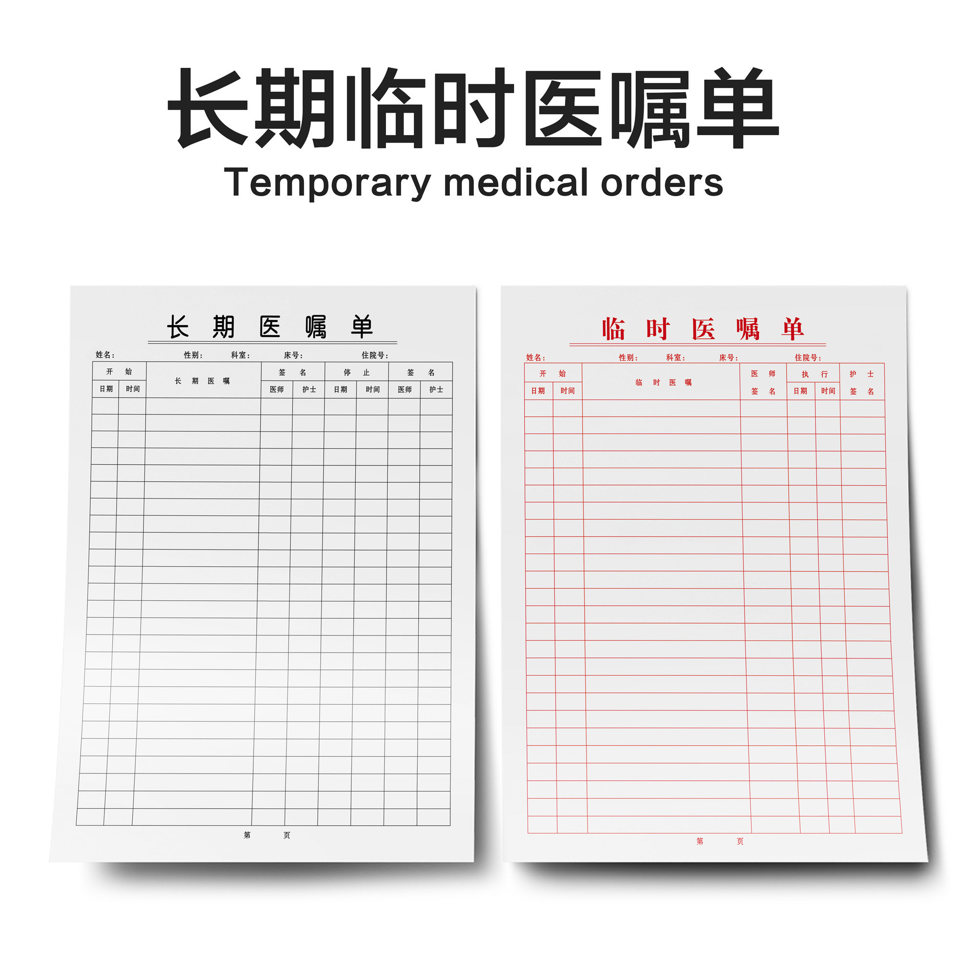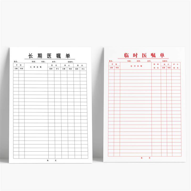 长期医嘱单临时医嘱单体温记录单护理记录表定制定做住院病案首页