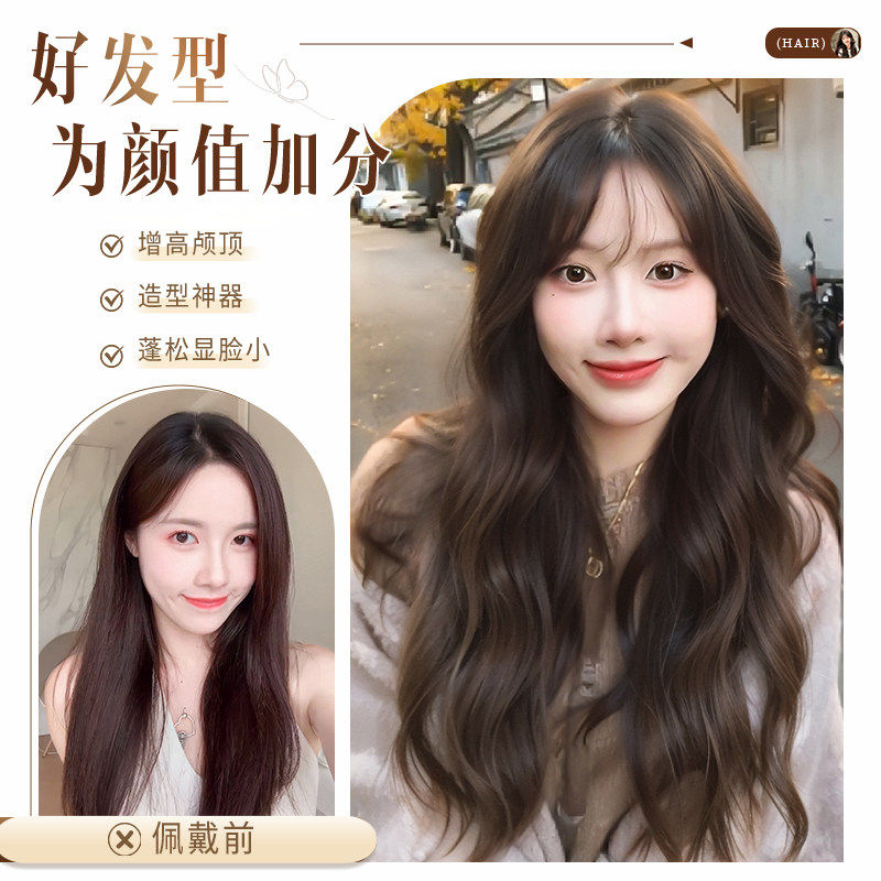 假发女全头套长卷发头顶假发片增发量免戴发网日常仿真发丝补发片