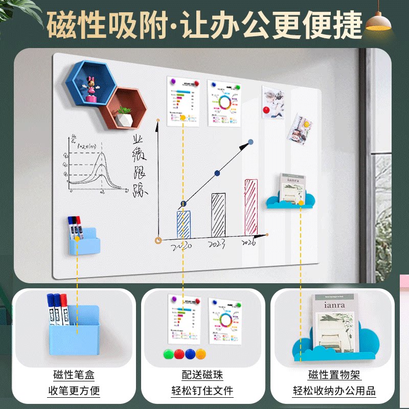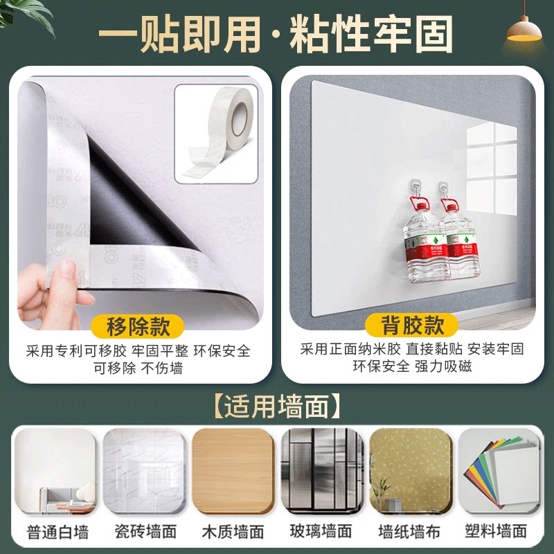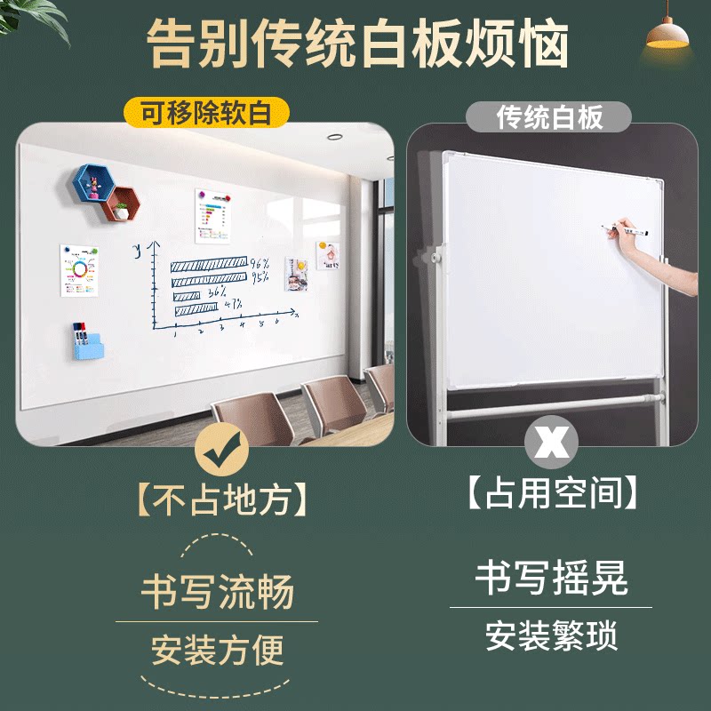 白板墙贴可移除办公室磁吸展示板办公用记事板挂墙上磁性贴玻璃留言板支架小黑板儿童家用教学可擦白板写字板