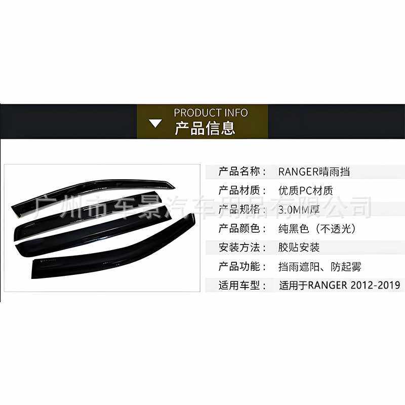 适用于福特ford RANGER 2015款晴雨挡注塑款遮阳挡雨眉高品质PC料