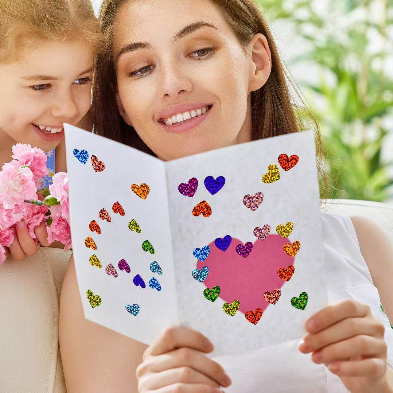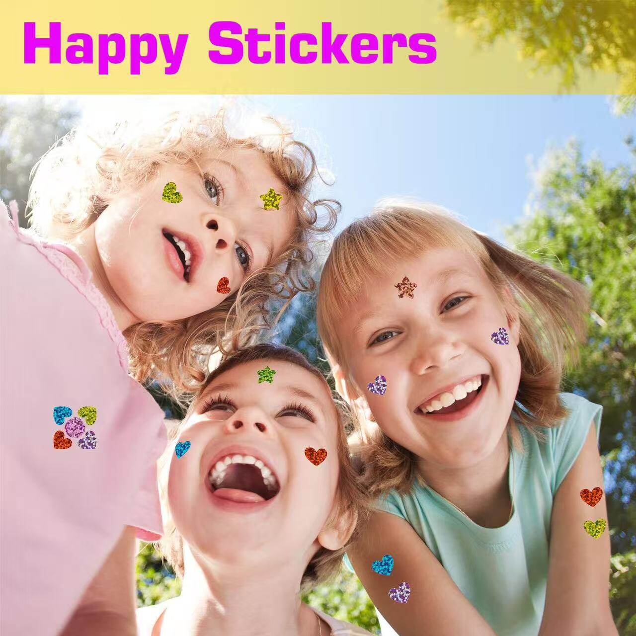 5张/包彩色爱心镭射闪亮贴纸儿童奖励额头手臂贴玩具装饰小贴画