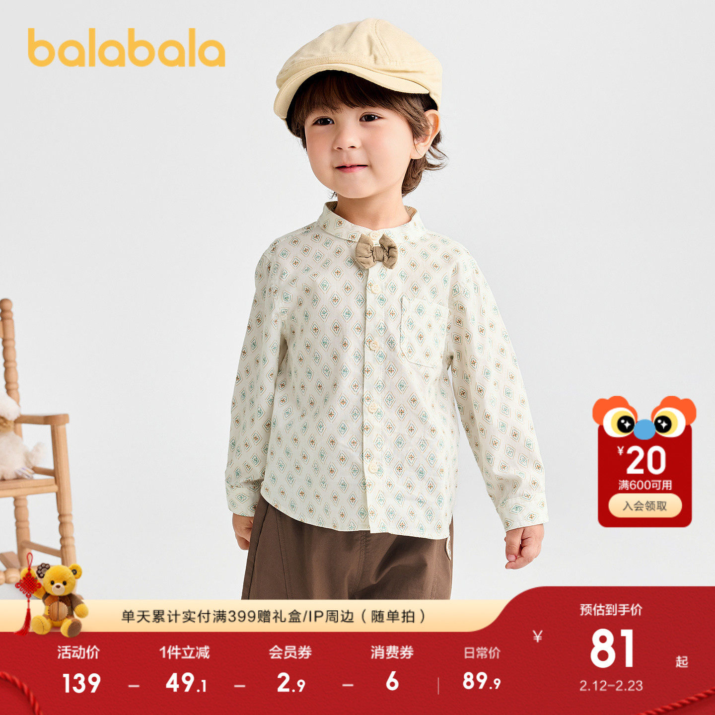 巴拉巴拉童装宝宝长袖衬衫男童衬衣2025秋冬装新款上衣时尚潮酷萌