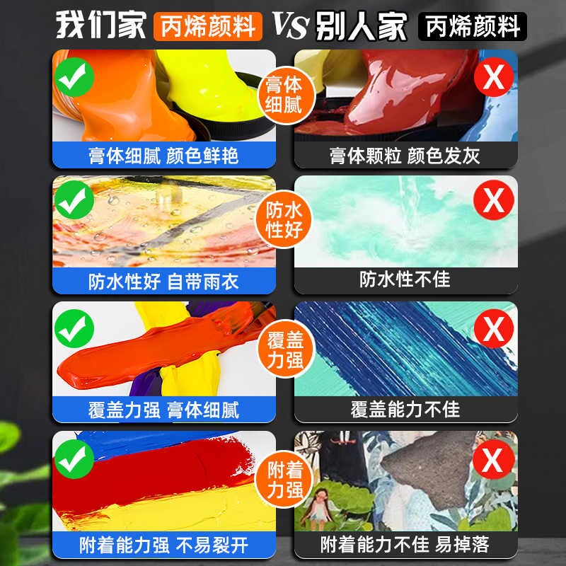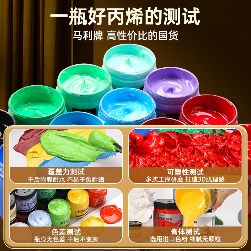 马利牌丙烯颜料防水防晒不掉色100ml石膏娃娃丙烯画diy墙绘衣服涂鸦材料彩绘肌理画无毒袋装美术生上色不褪色