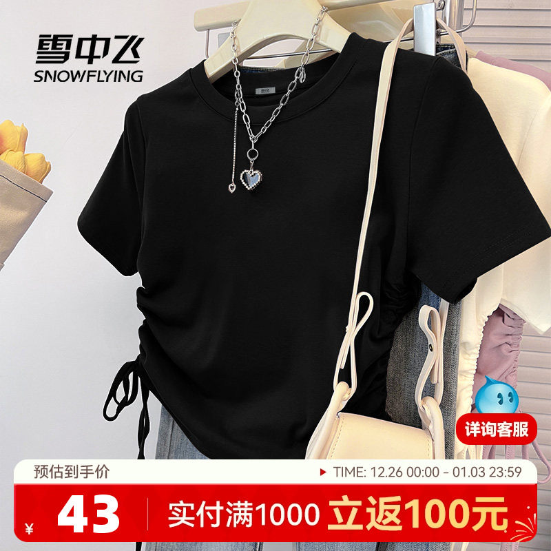 雪中飞抽绳短袖t恤女2026新款夏季女生收腰短款修身甜辣小上衣PC