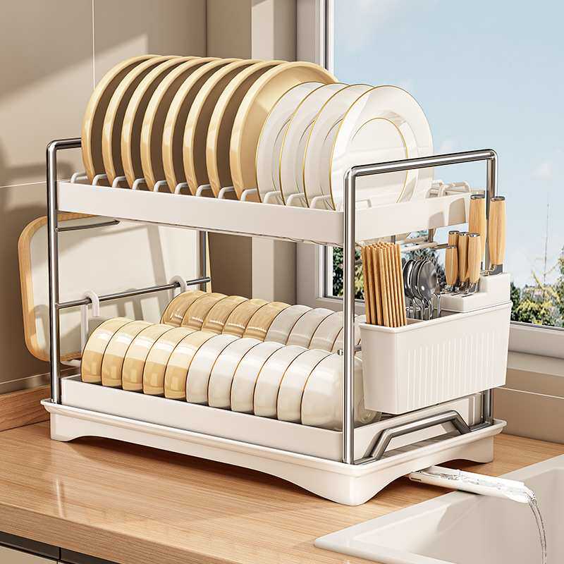 多功能碗碟收纳架厨房置物架台面沥水碗架家用碗盘筷双层餐具收纳