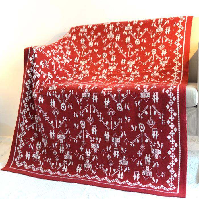 10037小雪人针织毯圣诞红色休闲线毯加厚针织雪人盖毯民宿装饰毯