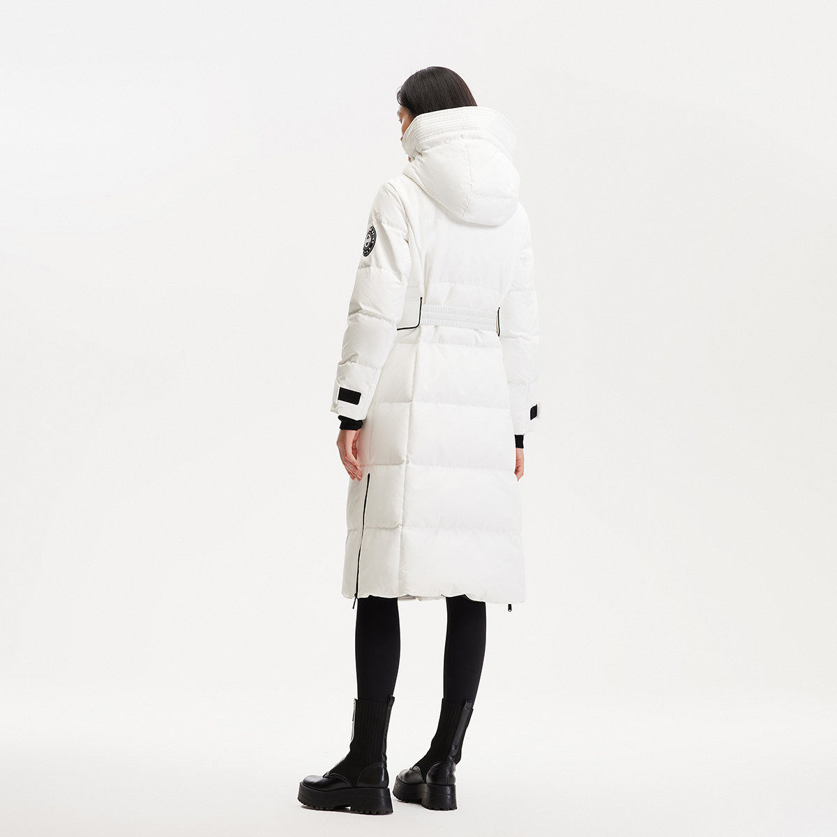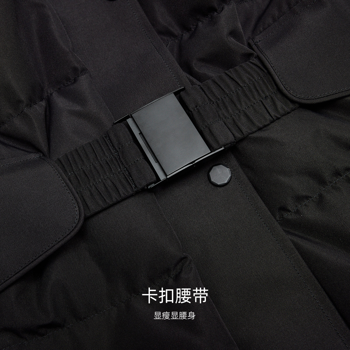 卡扣腰带,显瘦显腰身;连帽领型,保暖舒适