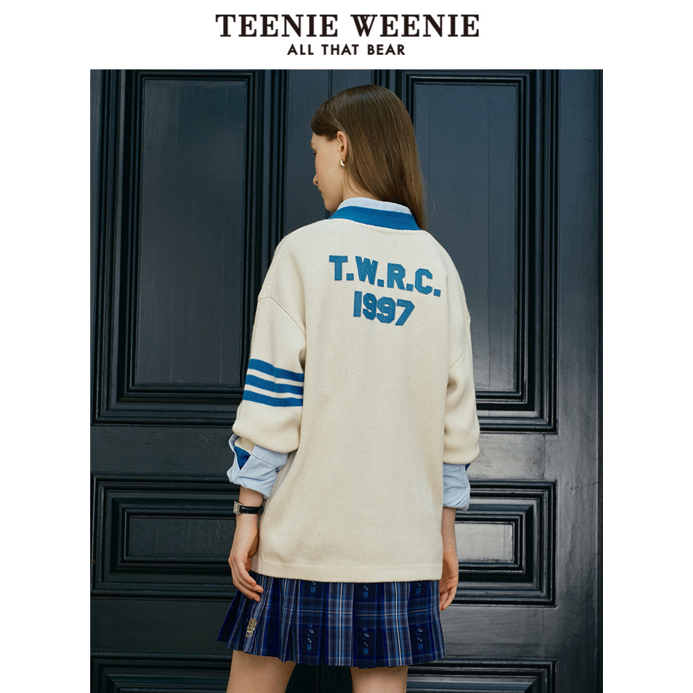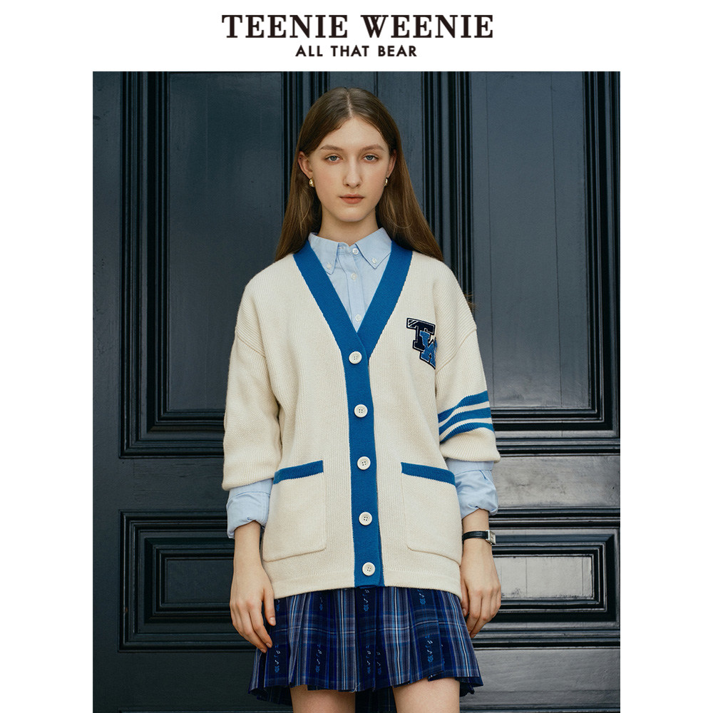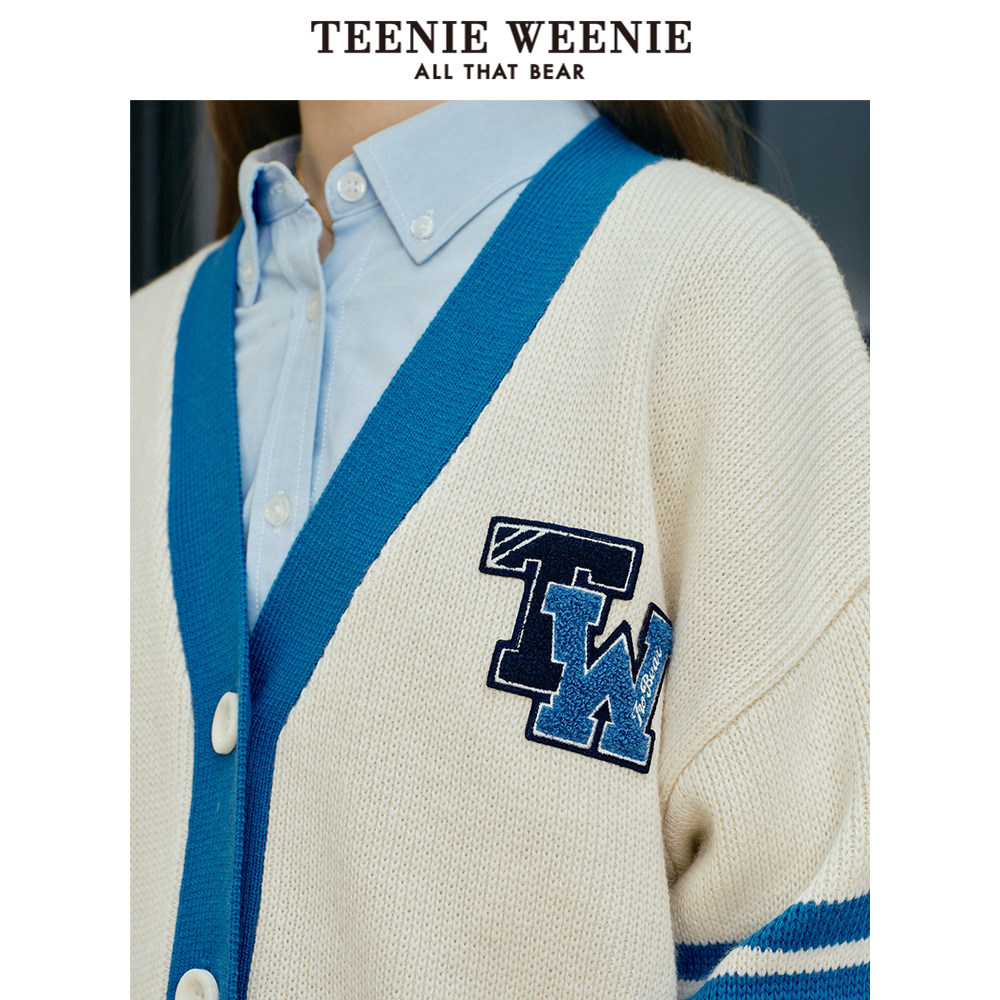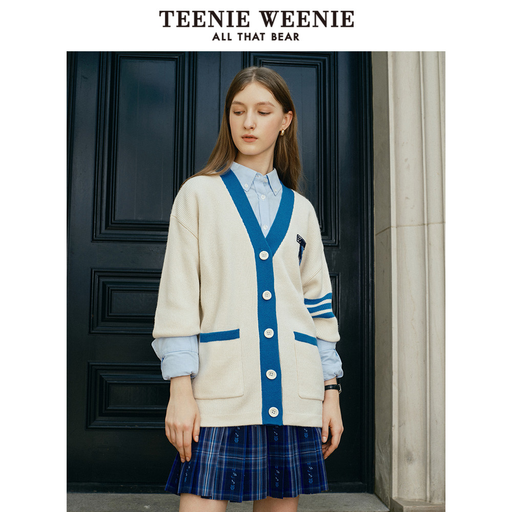 TeenieWeenie小熊奥莱秋季撞色V领针织开衫外套宽松韩版女