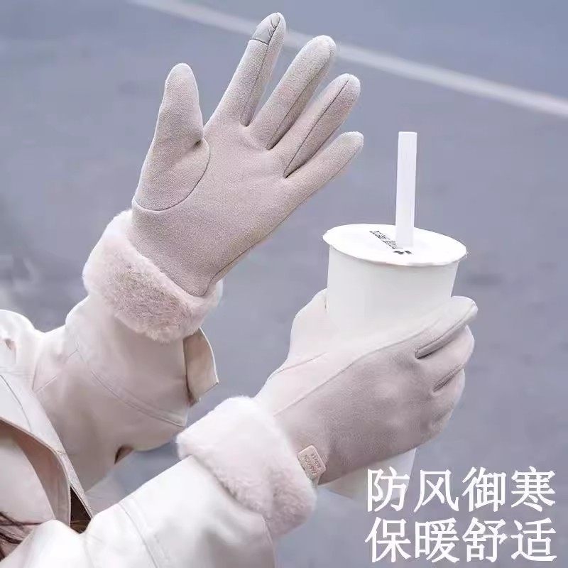 保暖手套冬天加绒加厚可爱麂皮绒女士骑行防寒骑车防风触屏冬季女
