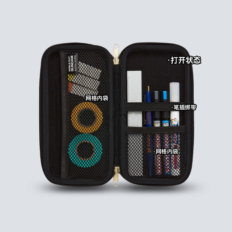 高达联名sunstar太阳星文具盒硬质外壳多功能笔盒不易损坏双拉链大开口拿取方便网格内袋收纳