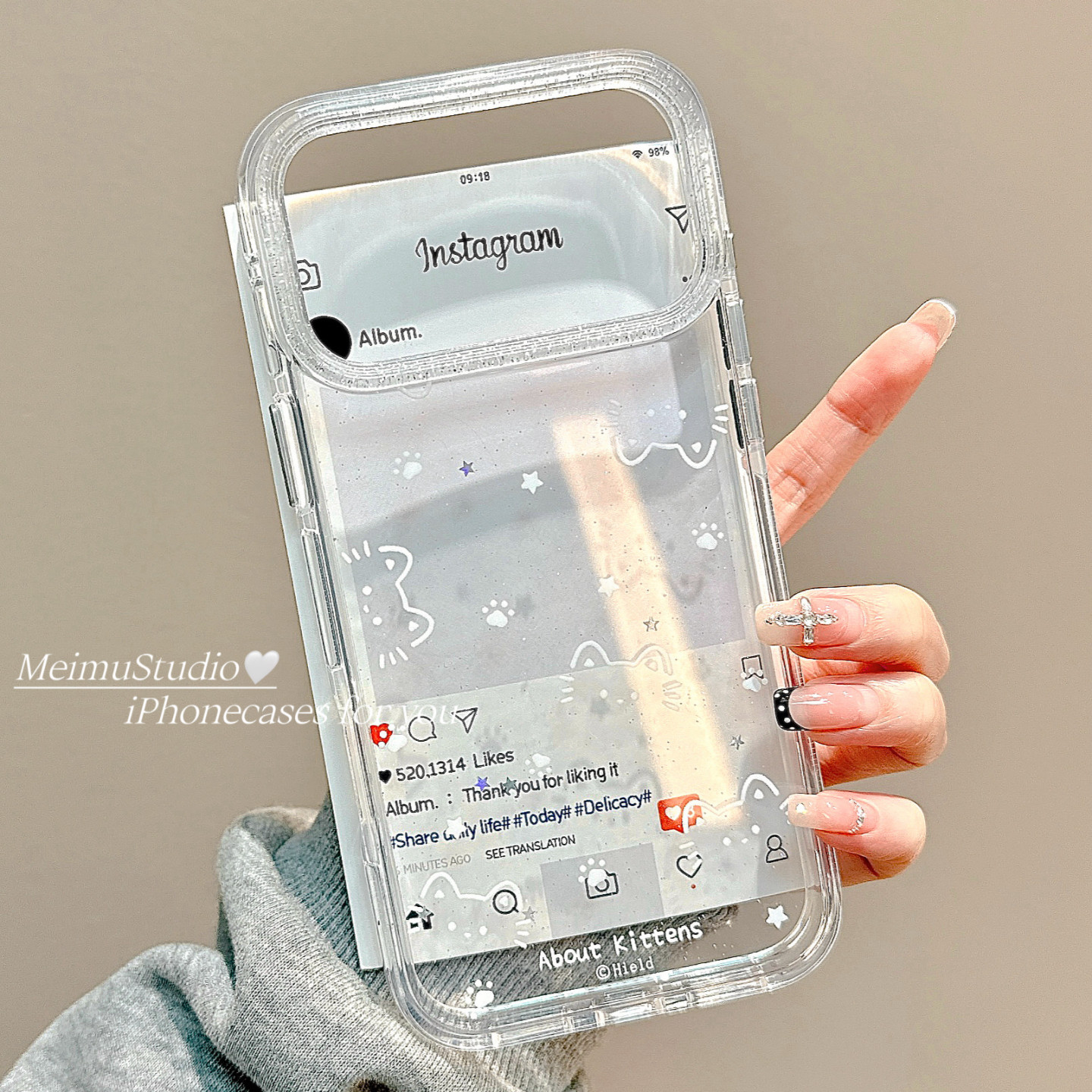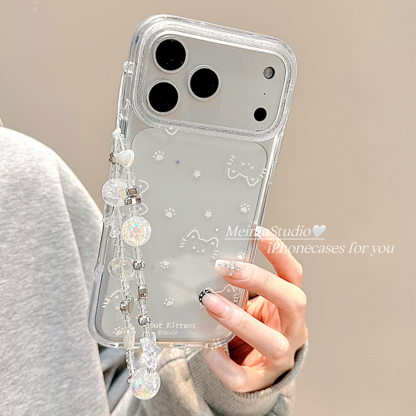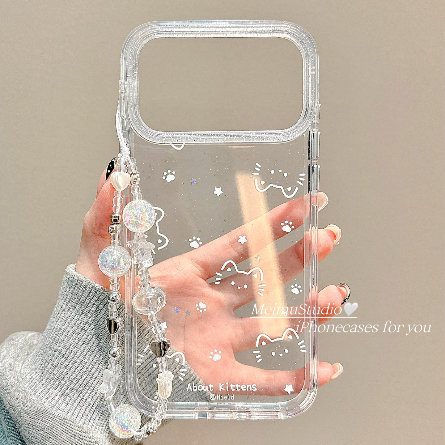 美牧可爱透明闪粉线条猫咪适用iphone17pro手机壳苹果16promax新款15带链条17简约14pm女13韩风16pro个性全包