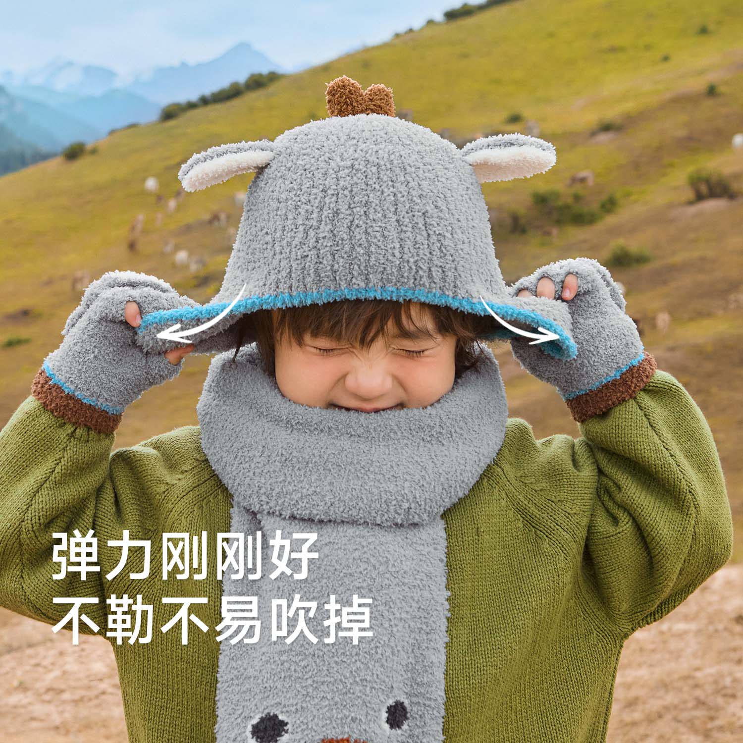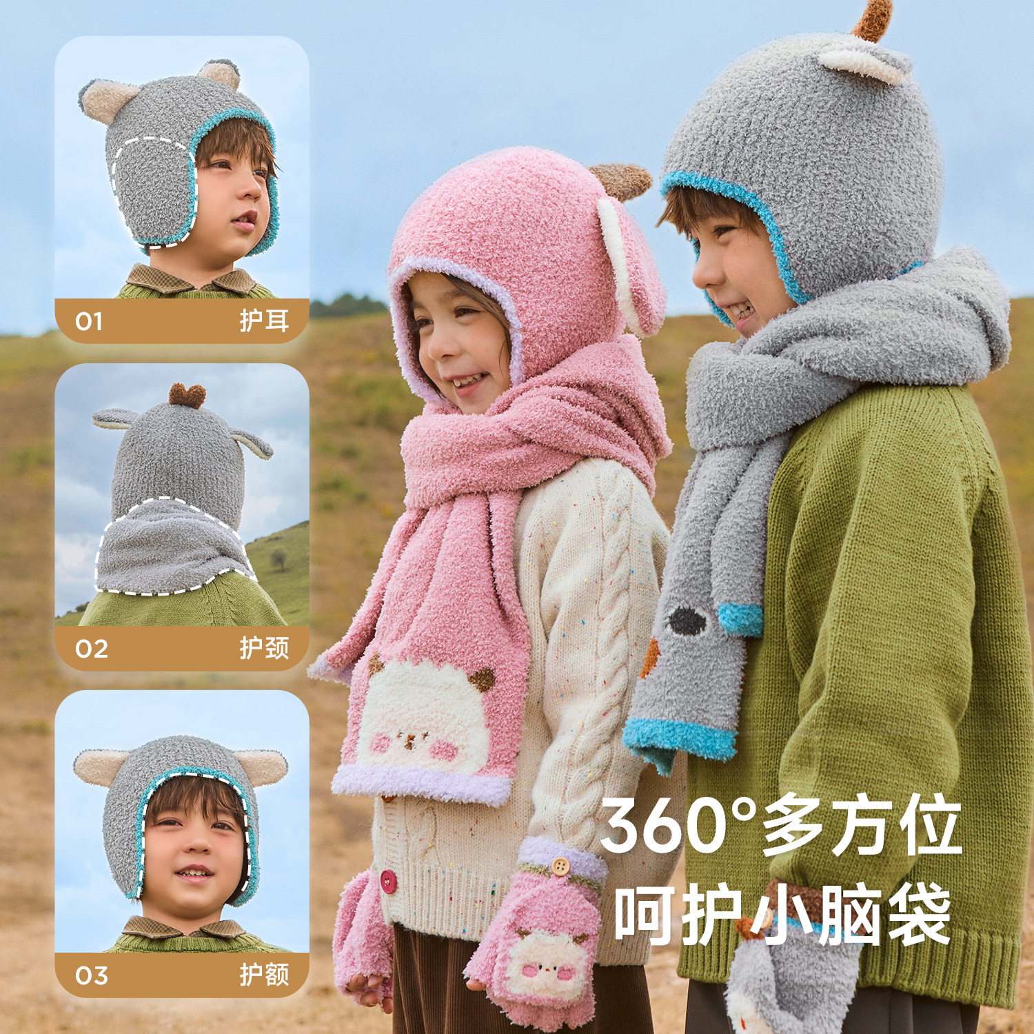 尼多熊2025儿童帽子保暖宝宝针织护耳帽秋冬女童毛绒帽组合装男孩