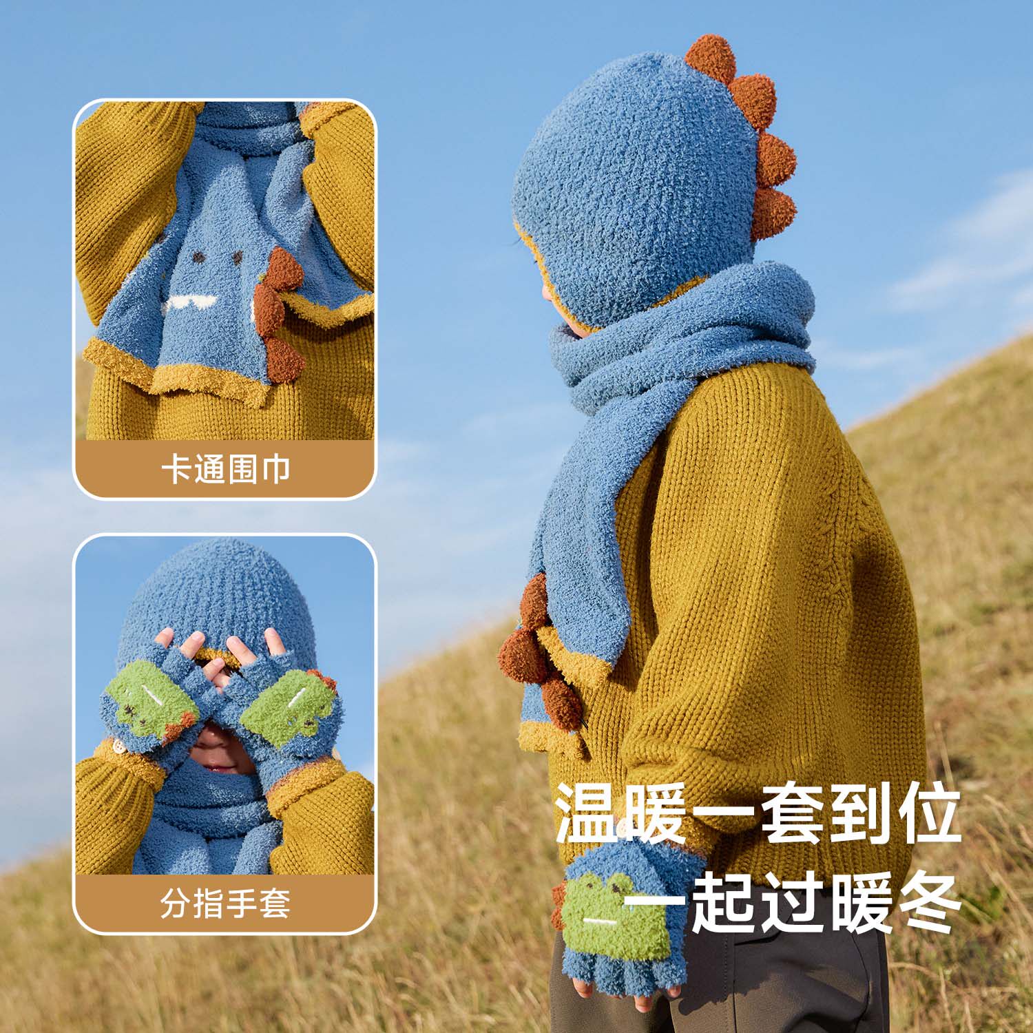 儿童冬季帽子围脖一体帽两件套婴儿可爱毛绒男女童宝宝保暖护耳厚