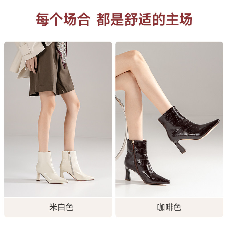 吴大叔2025秋冬季时尚复古鳄鱼纹尖头细跟短靴气垫缓震真皮时装靴