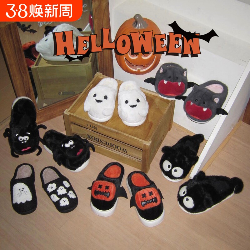 细细条男女搞怪棉拖鞋保暖情侣ins冬季室内毛毛鞋全包居家棉南瓜