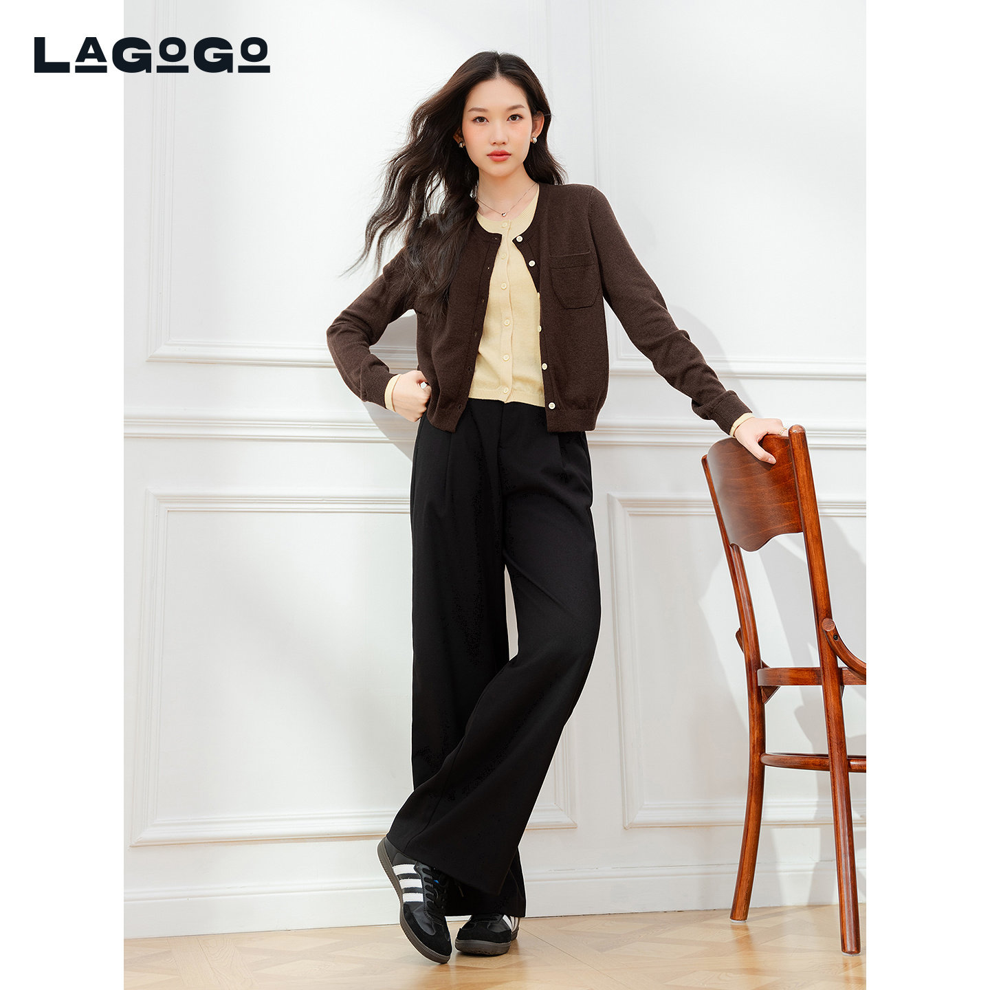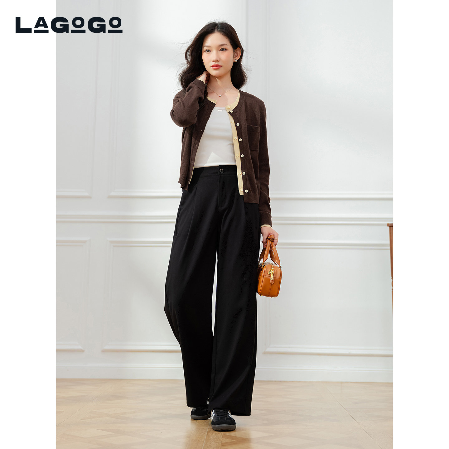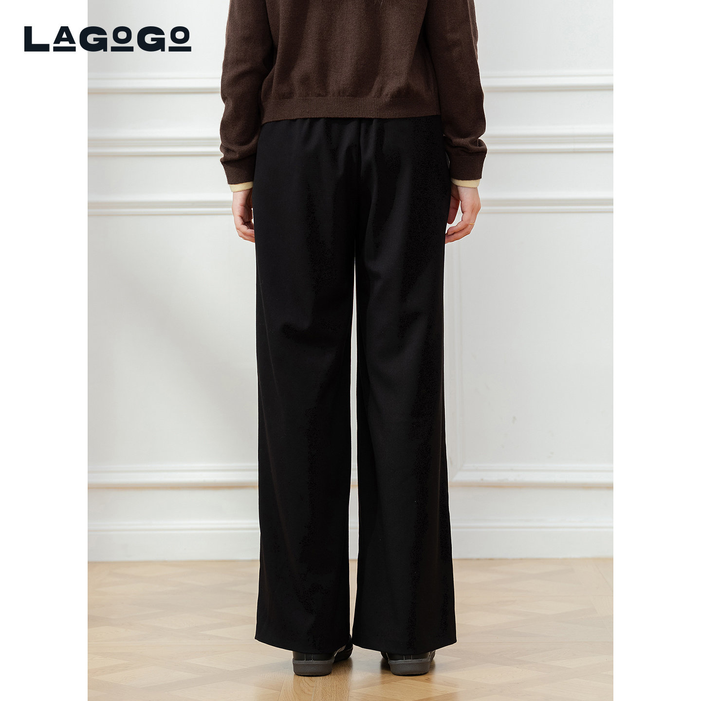LAGOGO黑色高腰阔腿裤女拉谷谷2026春新款职场休闲裤OCKK538C71