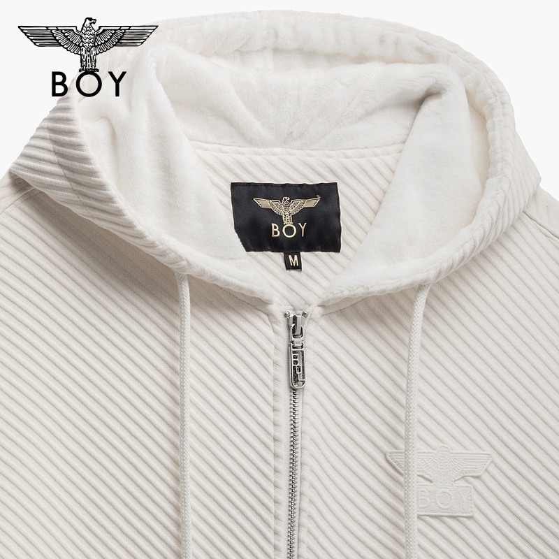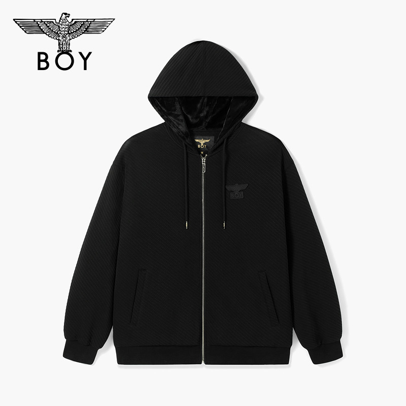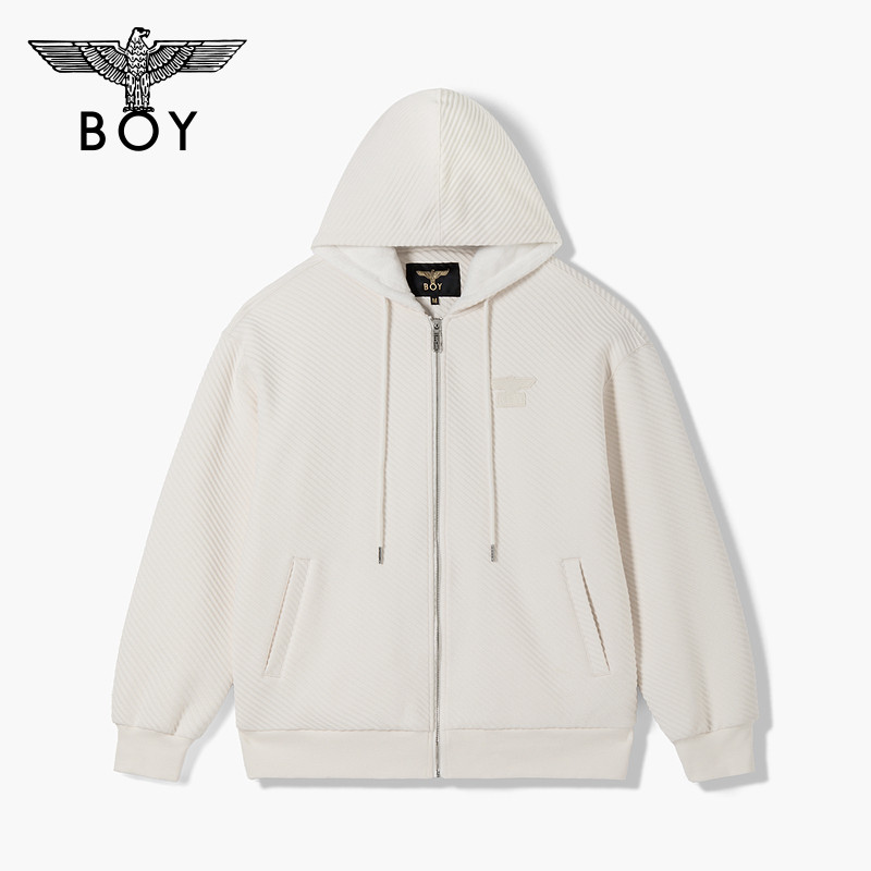 BOYLONDON开衫卫衣男女情侣款春秋季纹理休闲运动连帽外套N06024