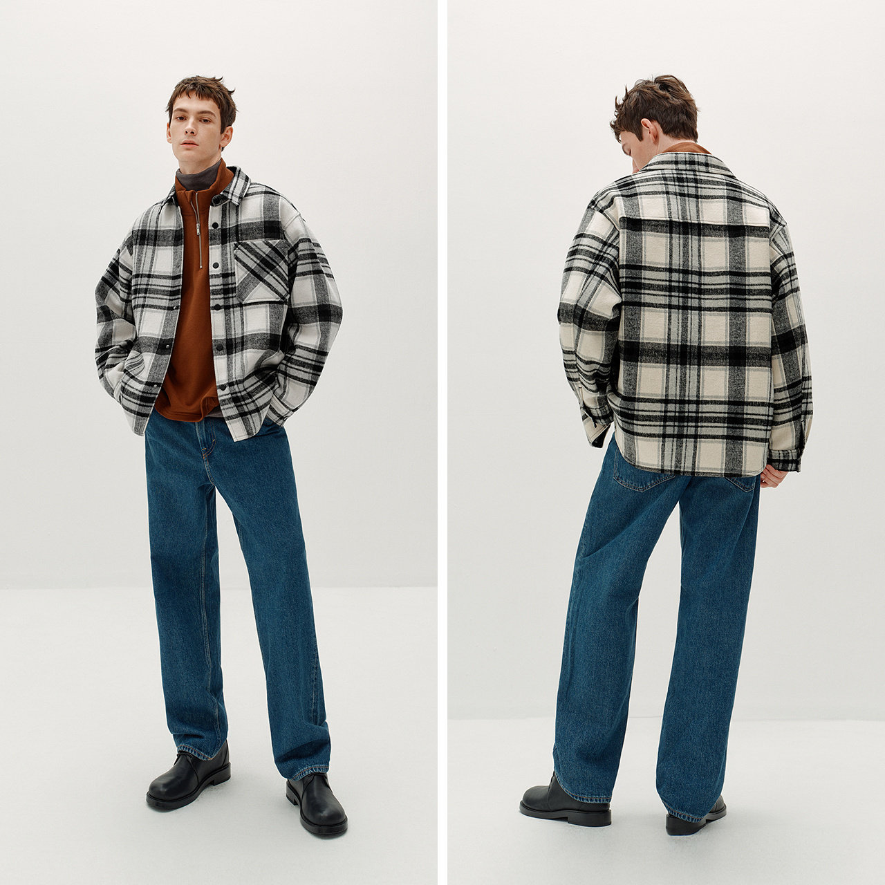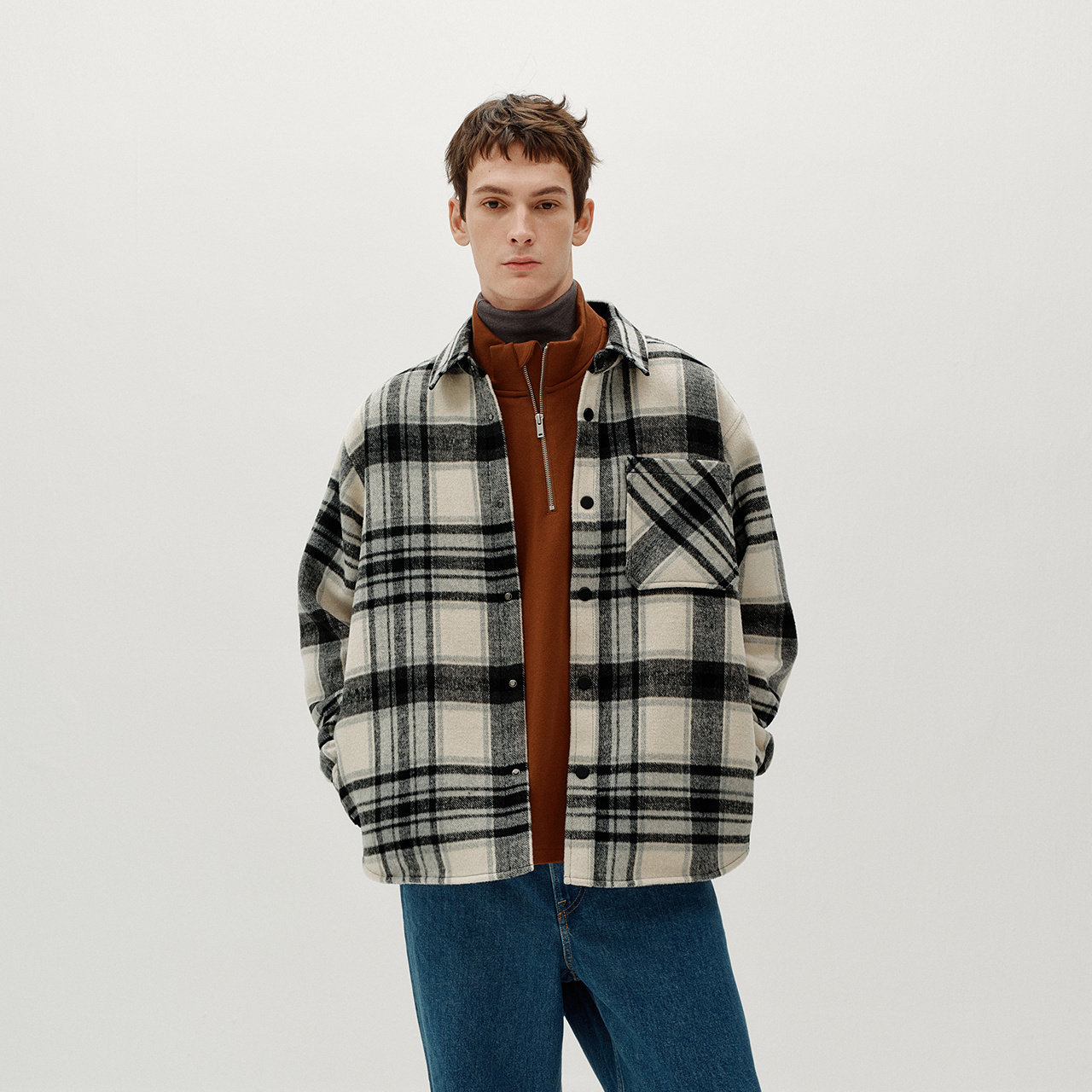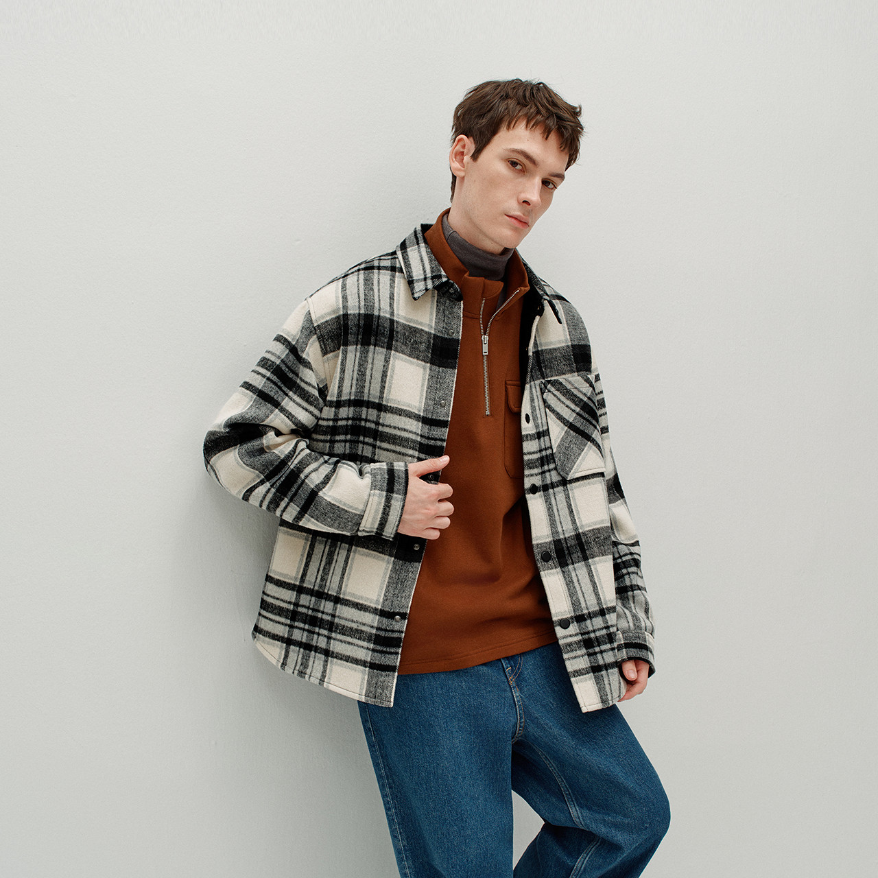 王安宇商场同款森马毛呢外套格子衬衫2025新款复古上衣男女同款
