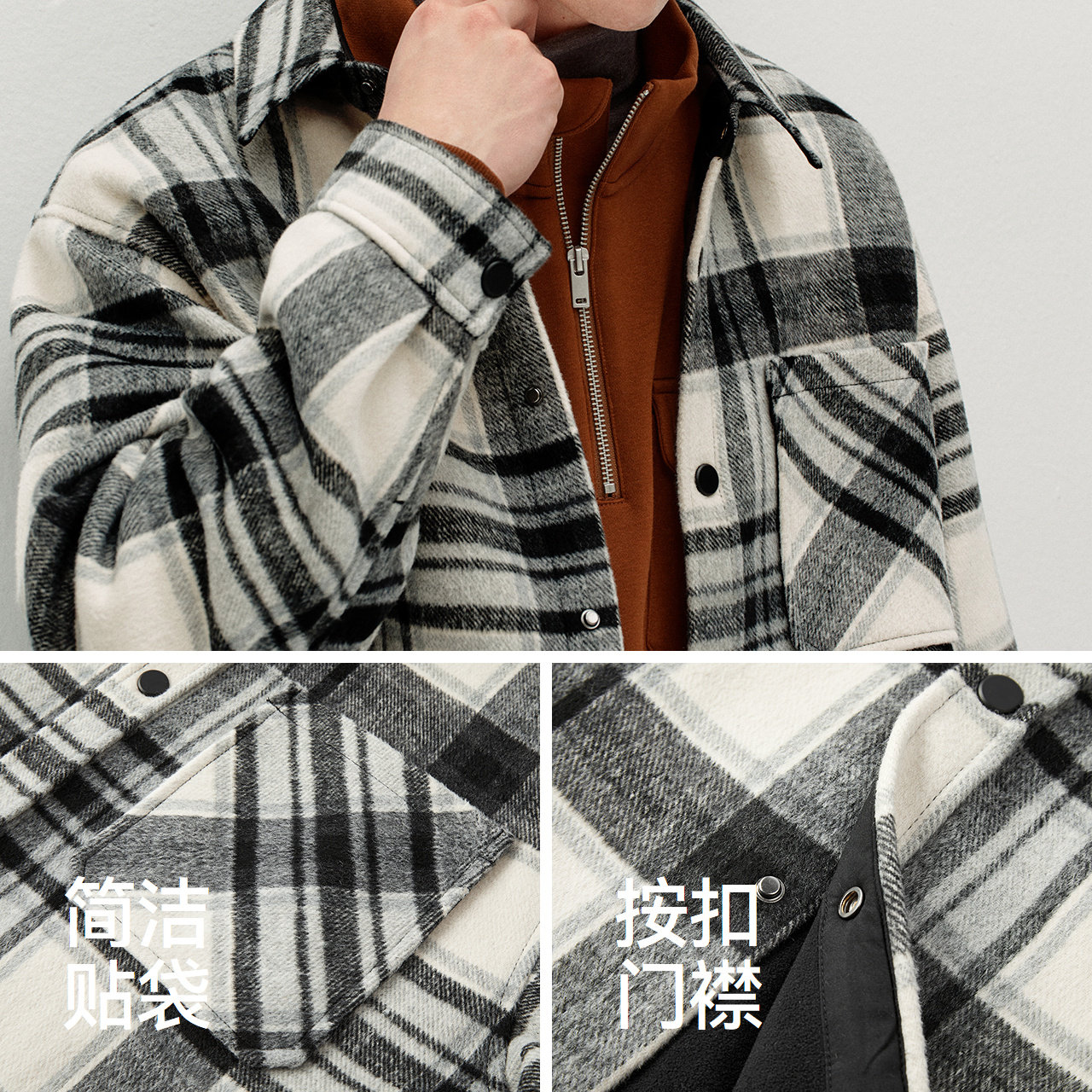 森马毛呢外套男冬季短款呢大衣不规则衬衫式翻领上衣复古时尚百搭