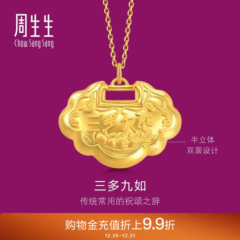 周生生足金生生有礼如意锁黄金长命锁吊坠周岁新生贺礼92148P