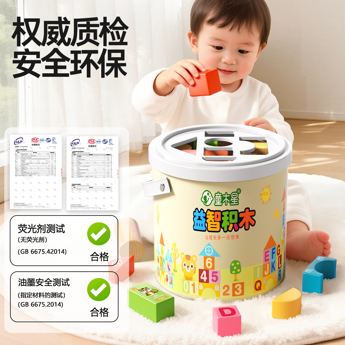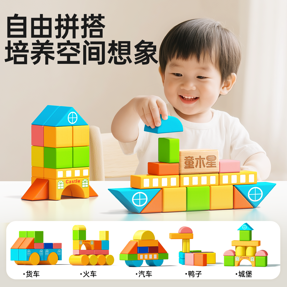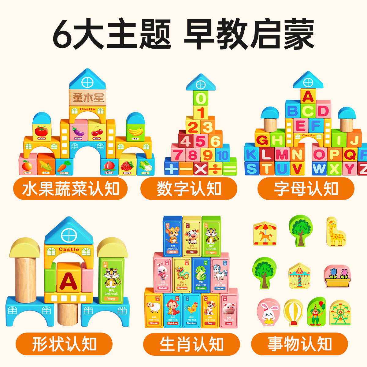 儿童积木益智拼装玩具3到6岁男孩子智力开发大脑思维实木质大颗粒