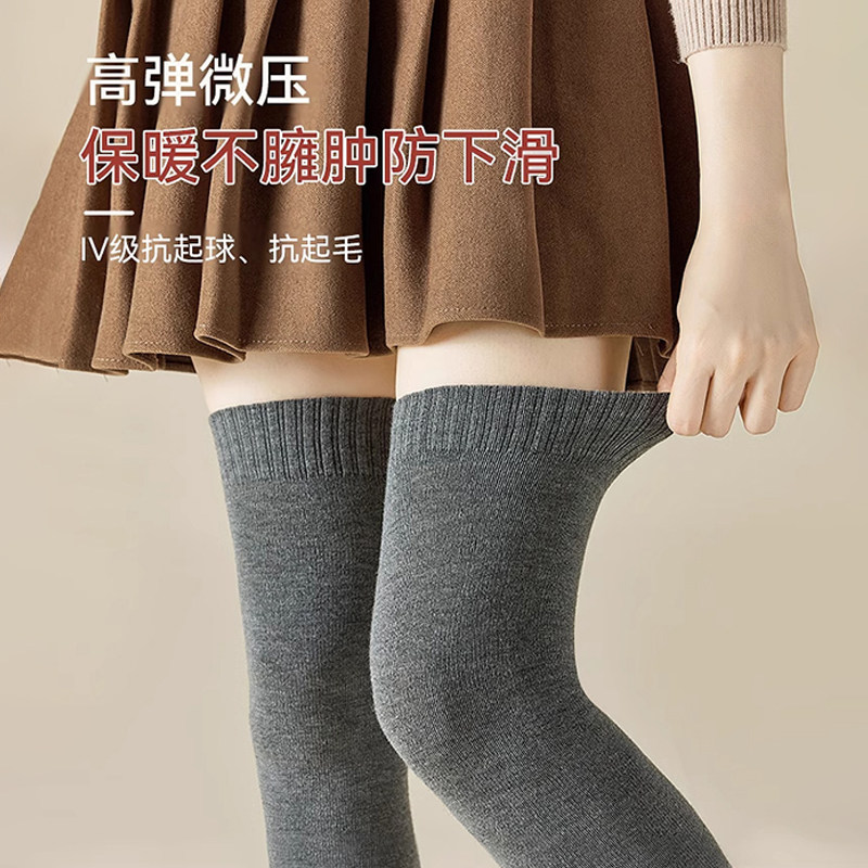 过膝袜子女秋冬羊毛长筒袜加厚保暖护膝大腿袜纯棉压力显瘦高筒袜