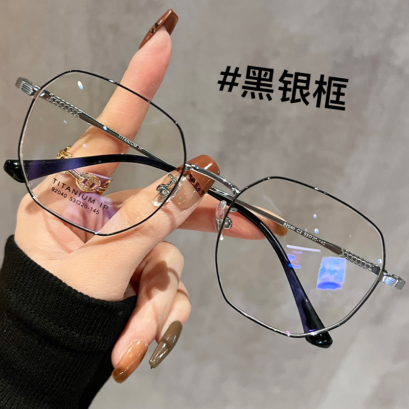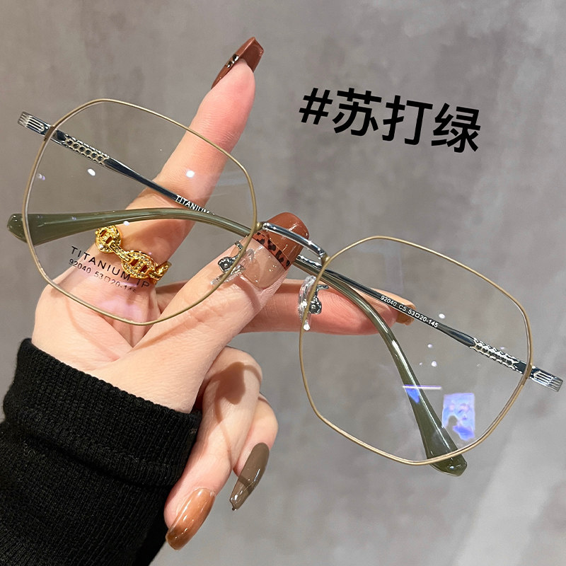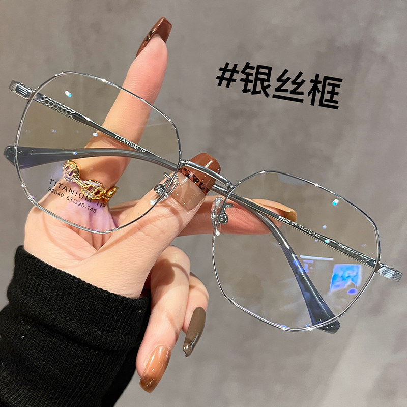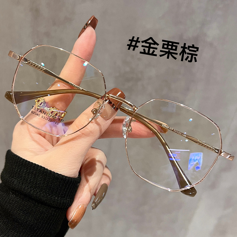 超轻钛架金丝细边眼镜女近视可配度数素颜气质多边形眼睛镜框架韩