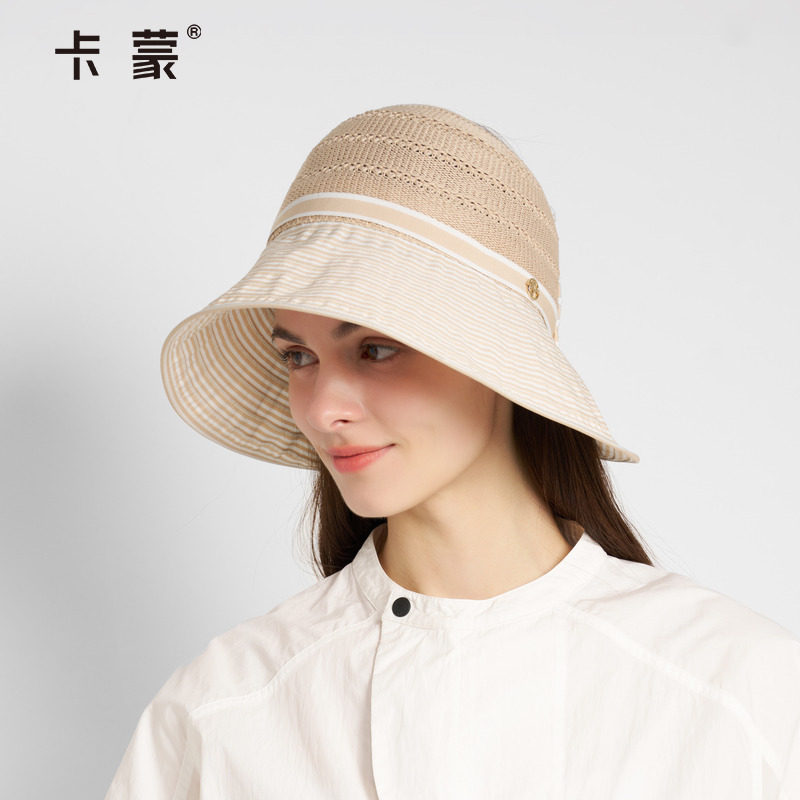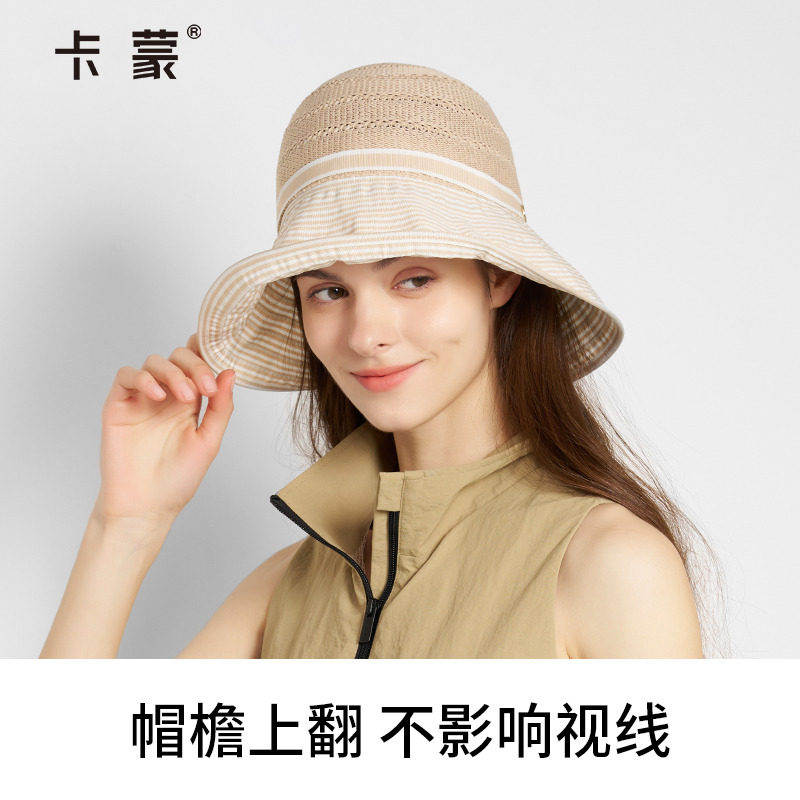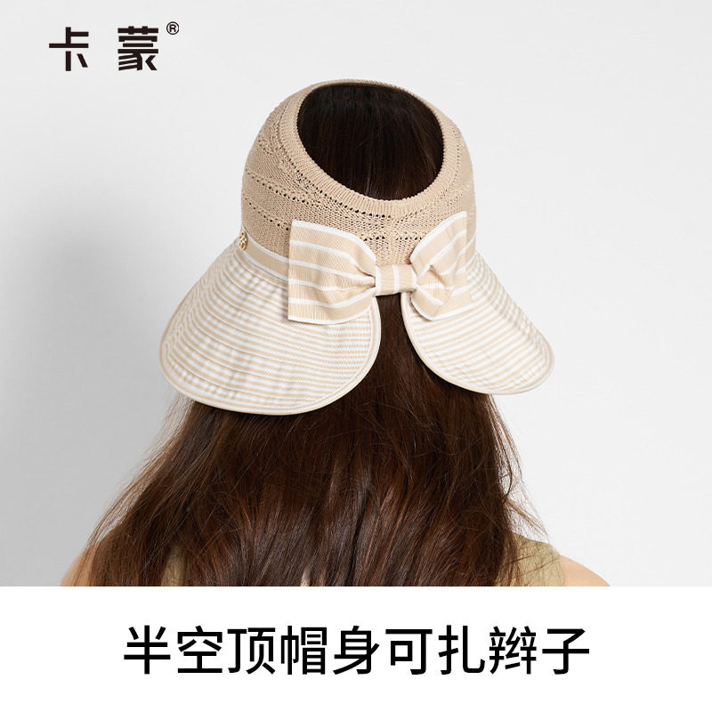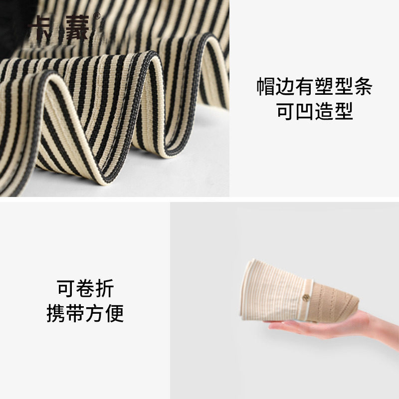 卡蒙半空顶帽大檐赫本风防晒帽女遮脸条纹可折叠可扎发防风遮阳帽
