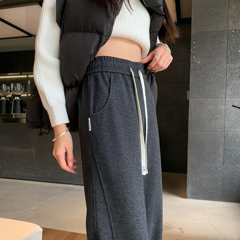 深灰色微喇休闲裤女2025秋冬加绒胖妹妹mm高腰弹力显瘦运动卫裤潮