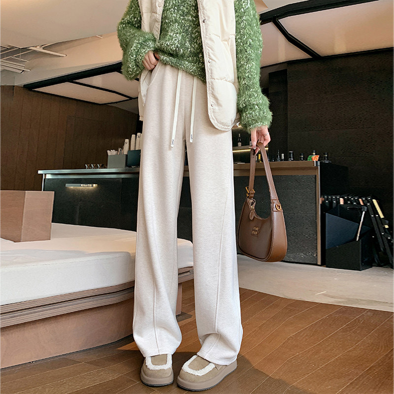 梨型身材微喇休闲裤女2025秋冬加绒胖妹妹mm高腰弹力显瘦运动卫裤