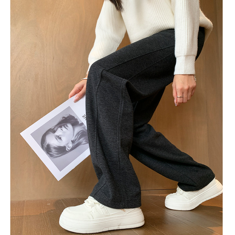 人字纹阔腿裤女秋冬2025新款弯刀直筒裤高个子加绒裤子香蕉裤大码