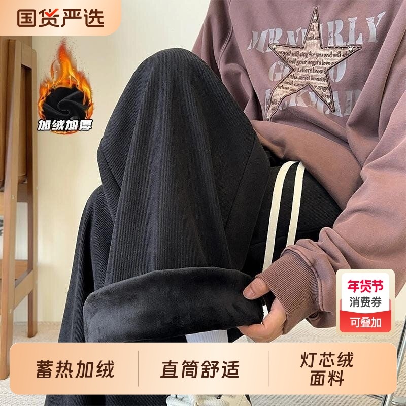 灯芯绒裤子男秋冬加绒宽松直筒休闲长裤潮流重磅春秋阔腿卫裤