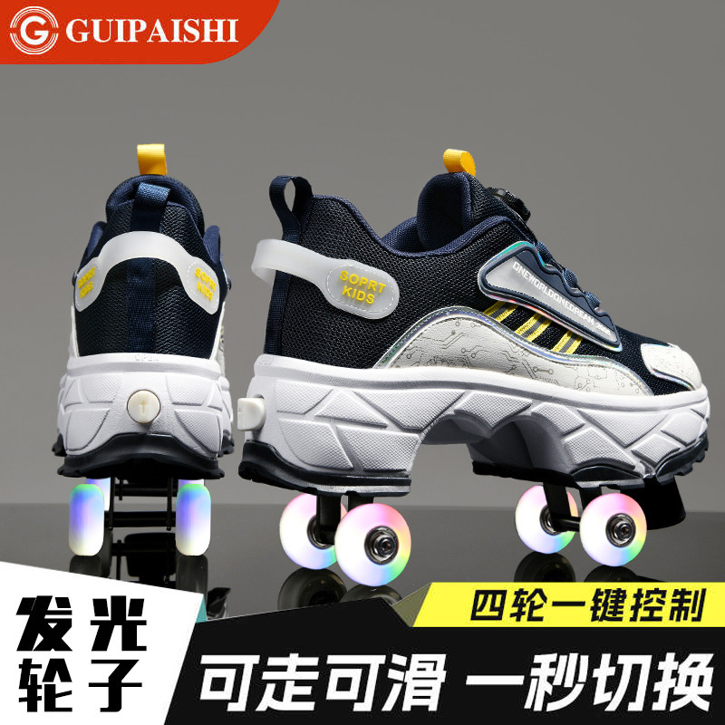 新款儿童暴走鞋四轮一键切换隐藏变形鞋男女童轮滑鞋青少年溜冰鞋
