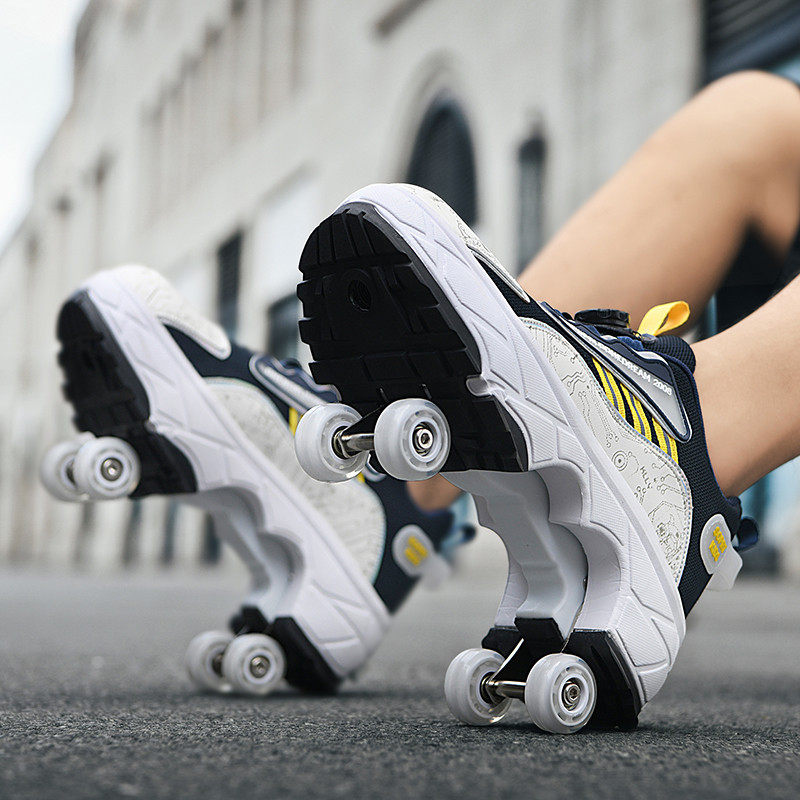 变形鞋暴走鞋四轮可走路代步成年爆走学生双排滑轮飞行鞋带轮子鞋