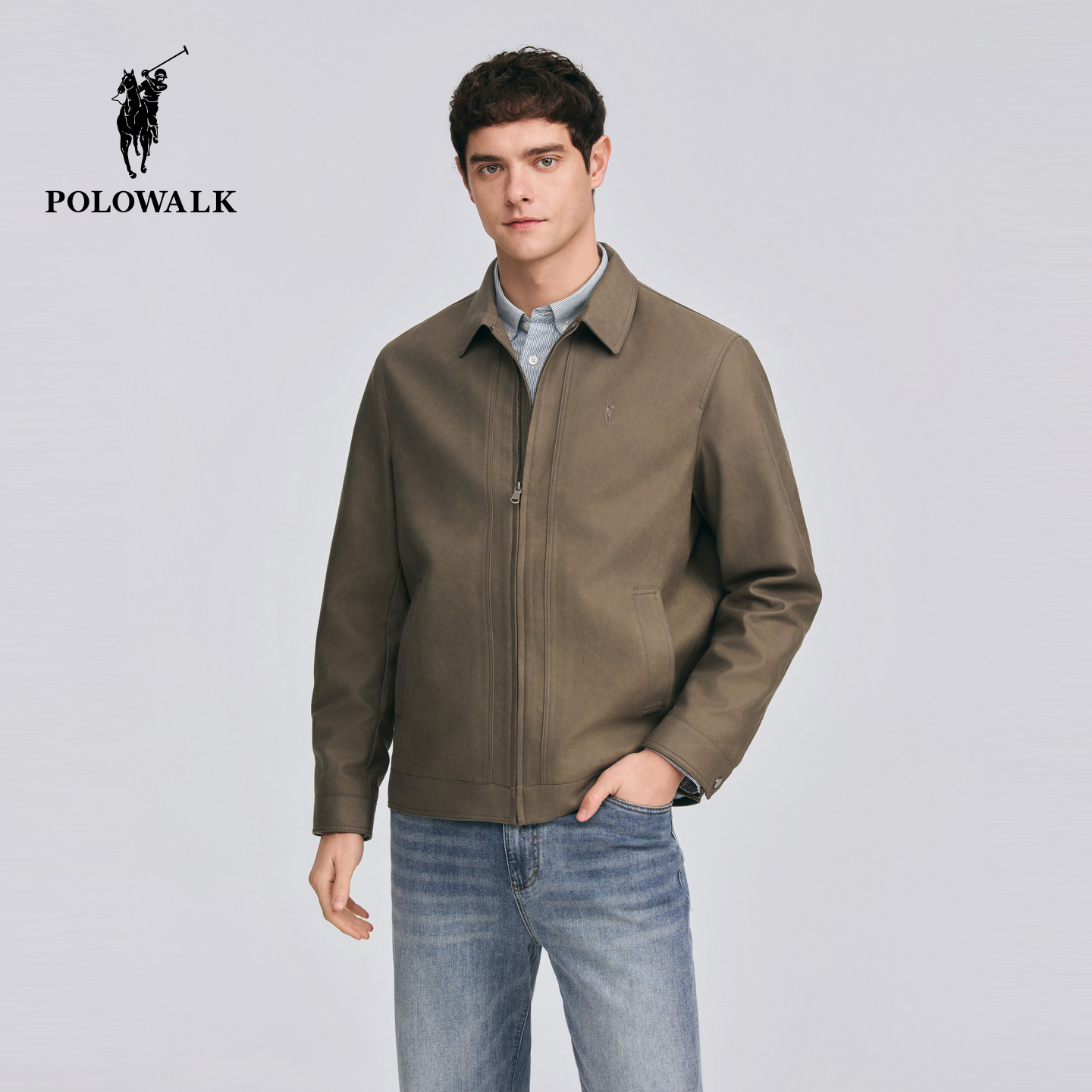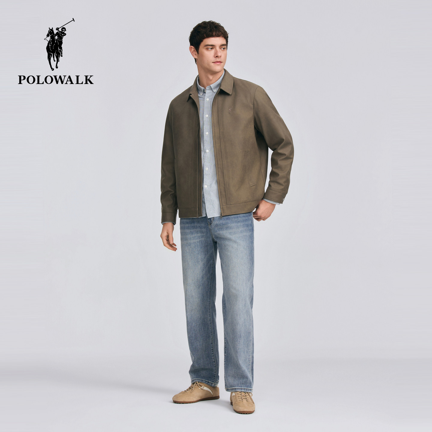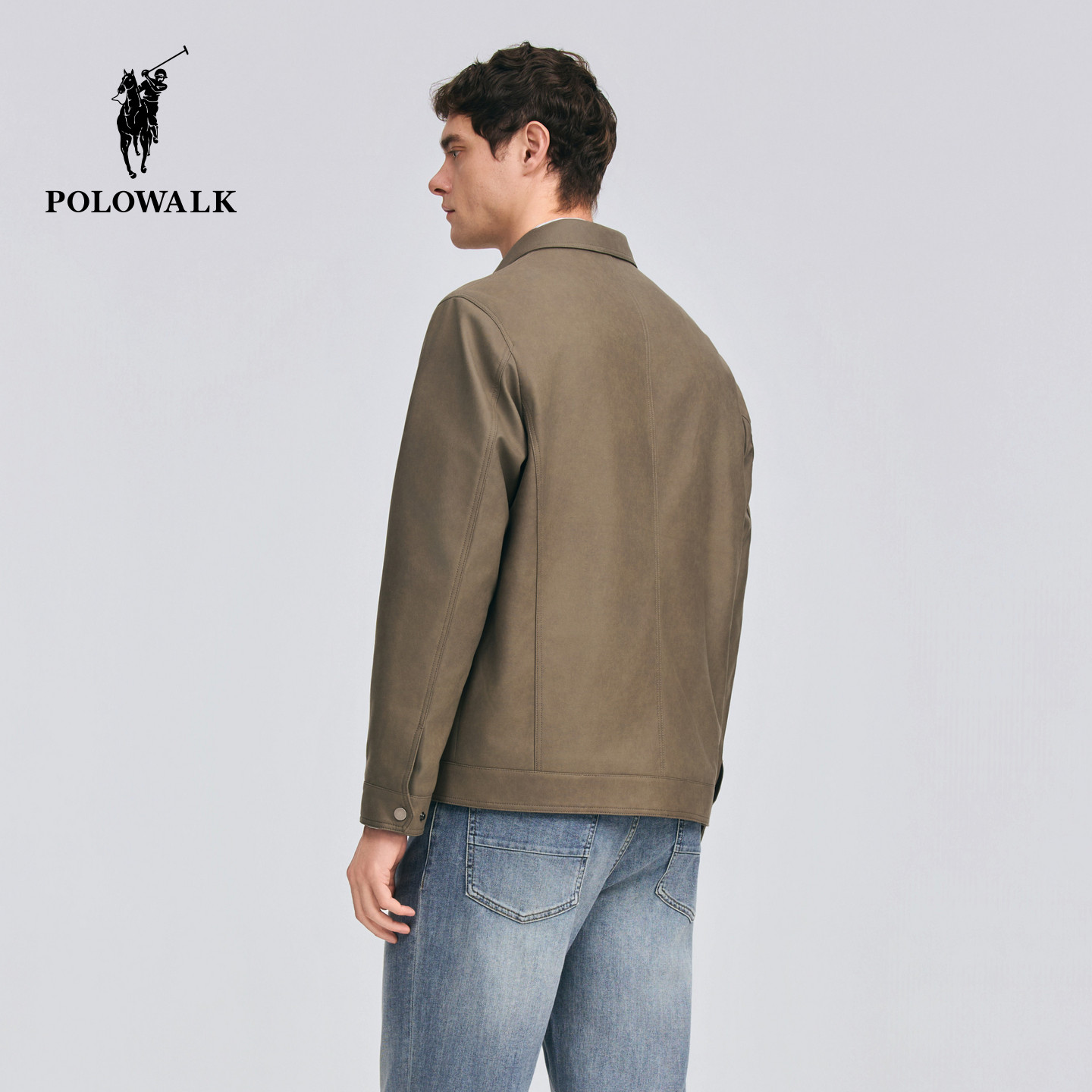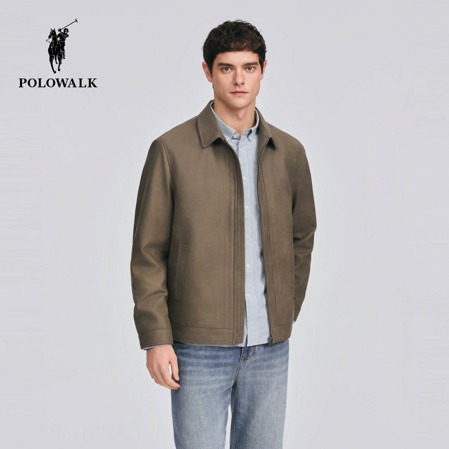 POLOWALK男式皮衣2026春季新品简约翻领皮衣通勤休闲百搭拉链外套
