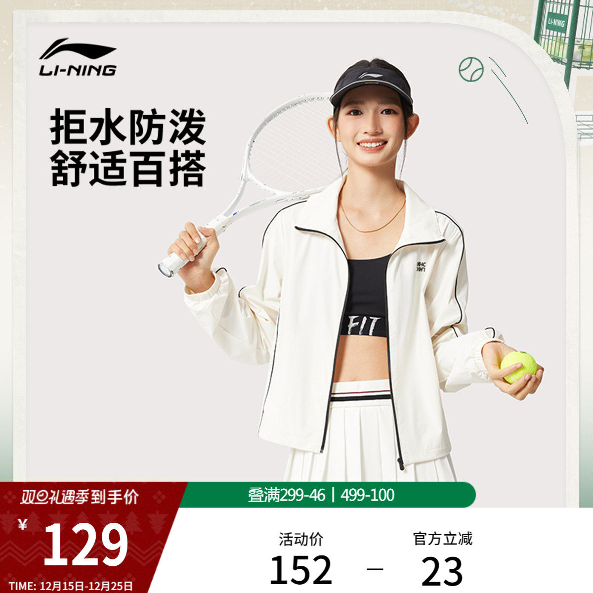 李宁风衣女秋冬新款网球短款上衣翻领夹克开衫梭织跑步运动外套