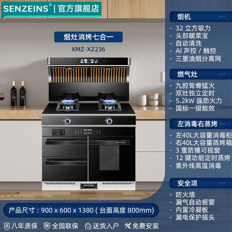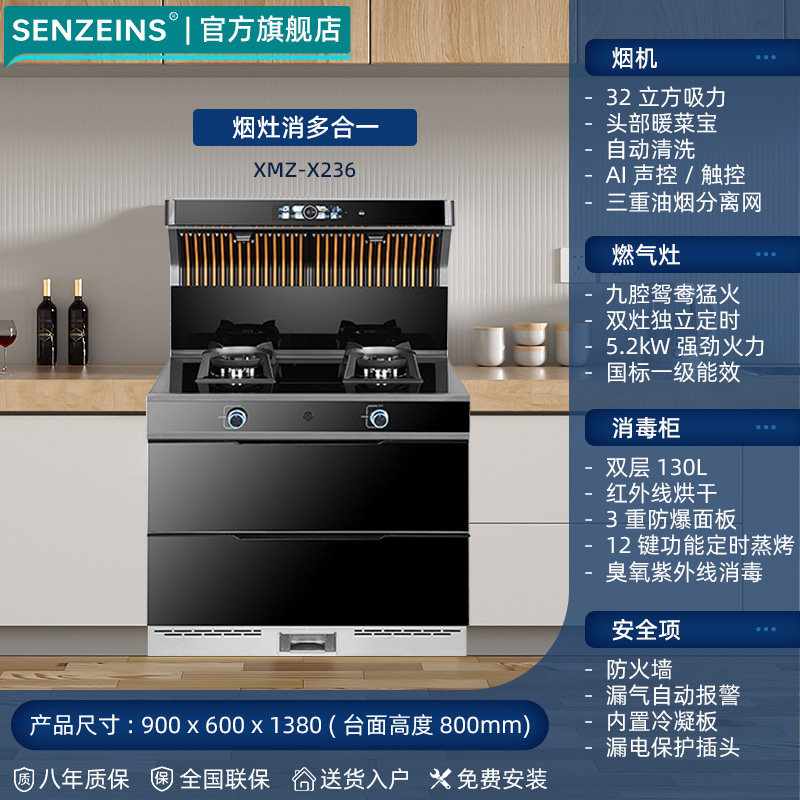 西门SENZElNS官方旗舰集成灶家用蒸烤箱消毒一体侧吸智能油烟机