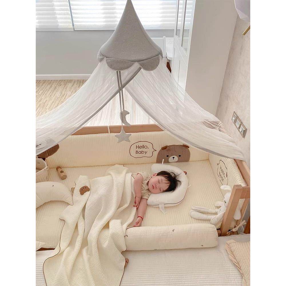 婴儿床蚊帐全罩式通用宝宝防蚊罩儿童拼接床专用遮光防摔床幔支架