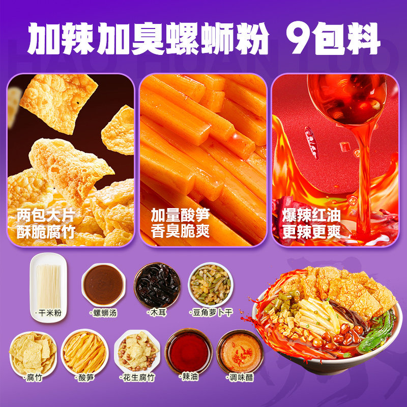 好欢螺螺蛳粉柳州米粉袋装广西螺狮粉速食夜宵螺丝粉米粉酸辣粉