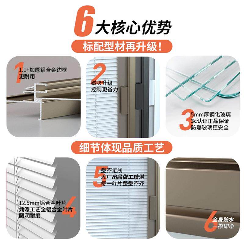 磁控百叶窗帘嵌入式磁吸百叶内置卫生间厨房铝合金百叶帘免拆卸