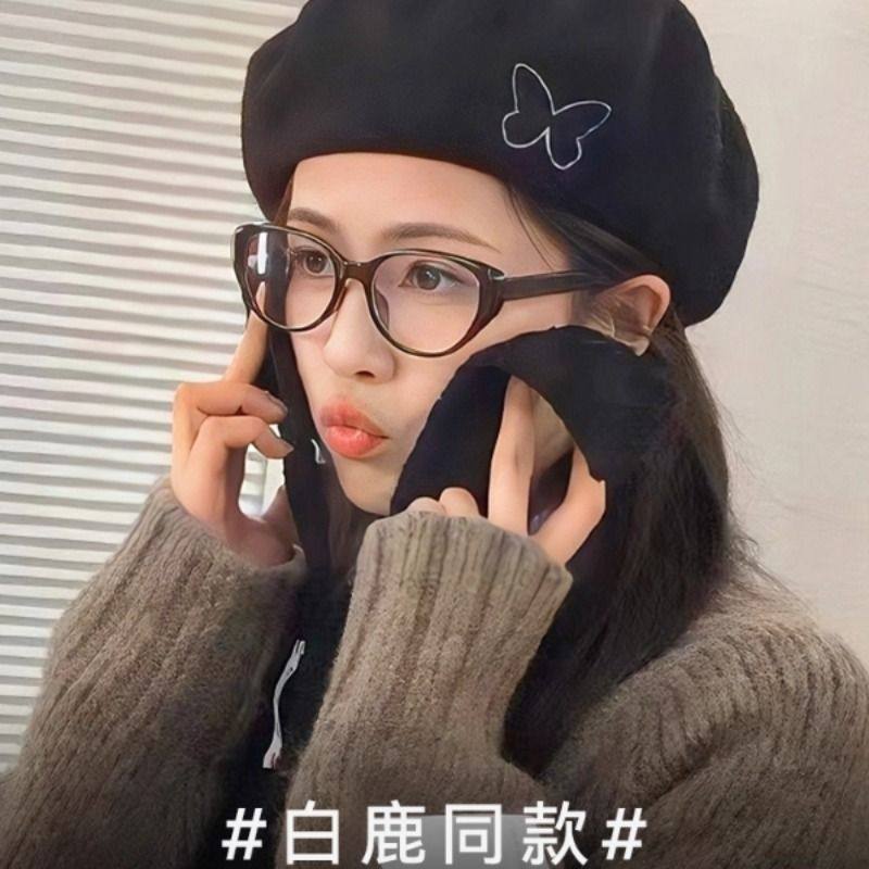 白鹿同款猫眼镜框女近视可配度数防蓝光显瘦黑框眼镜架护眼显脸小