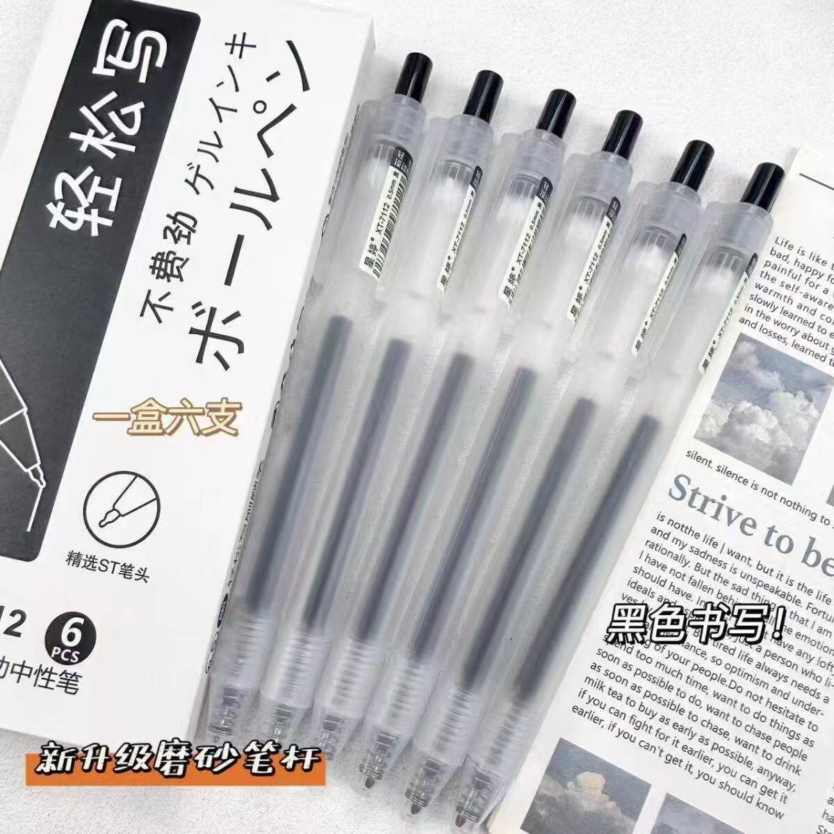轻松写按动中性笔简约透明磨砂0.5学生刷题笔办公碳素考试速干笔