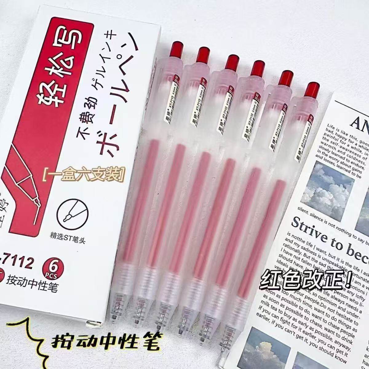 晴耕雨读刷题笔专用高颜值速干按动中性笔ins黑笔圆珠笔ST笔学生用考试笔顺滑0.5笔芯黑色水性签字笔水笔碳素