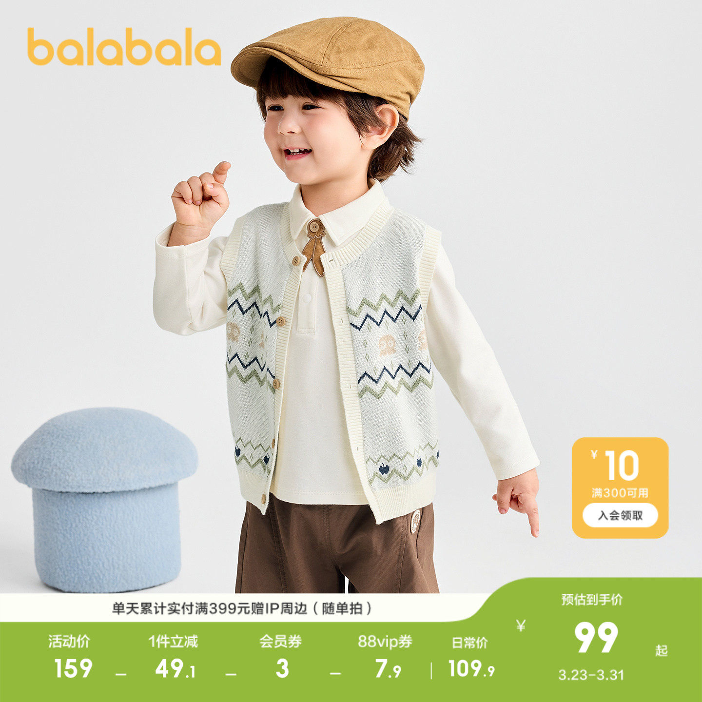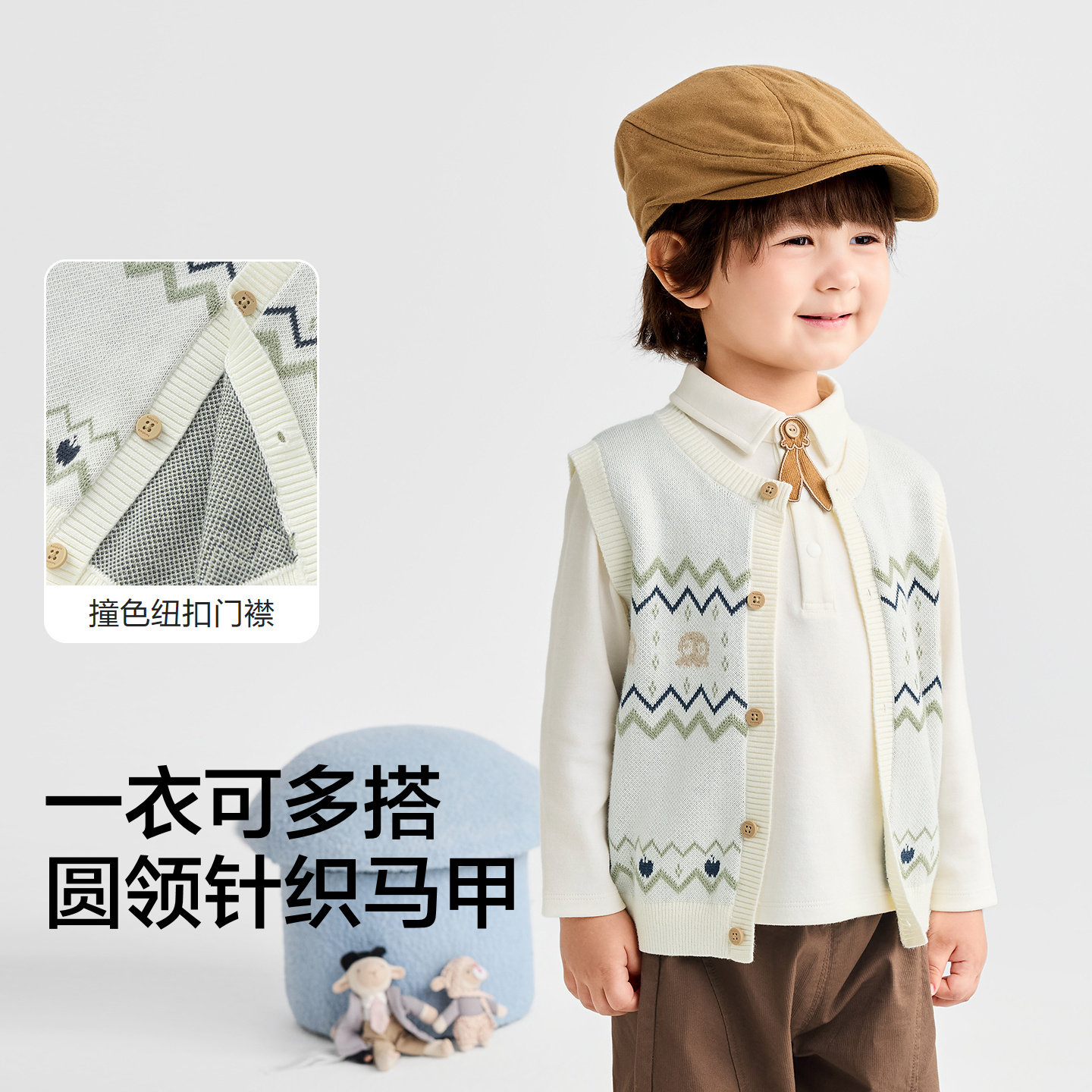 【商场同款】巴拉巴拉宝宝马甲男童针织衫圆领开衫毛衣秋纯棉柔软