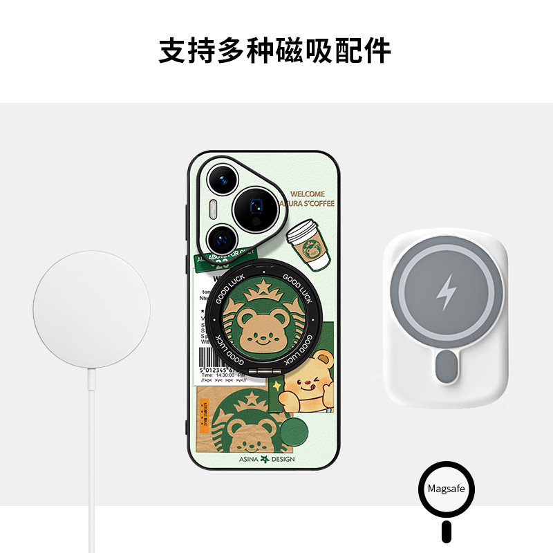 咖啡黄油小熊适用华为pura80pro手机壳全包P70防摔磁吸带支架保护套pura70pro+高级感ins风pura70联名Ho3新款