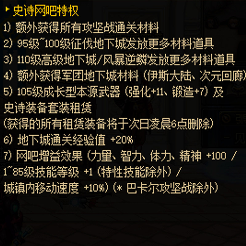 DNF史诗网吧特权buff团本翻牌奖励50疲劳药家用搬砖地下城与勇士