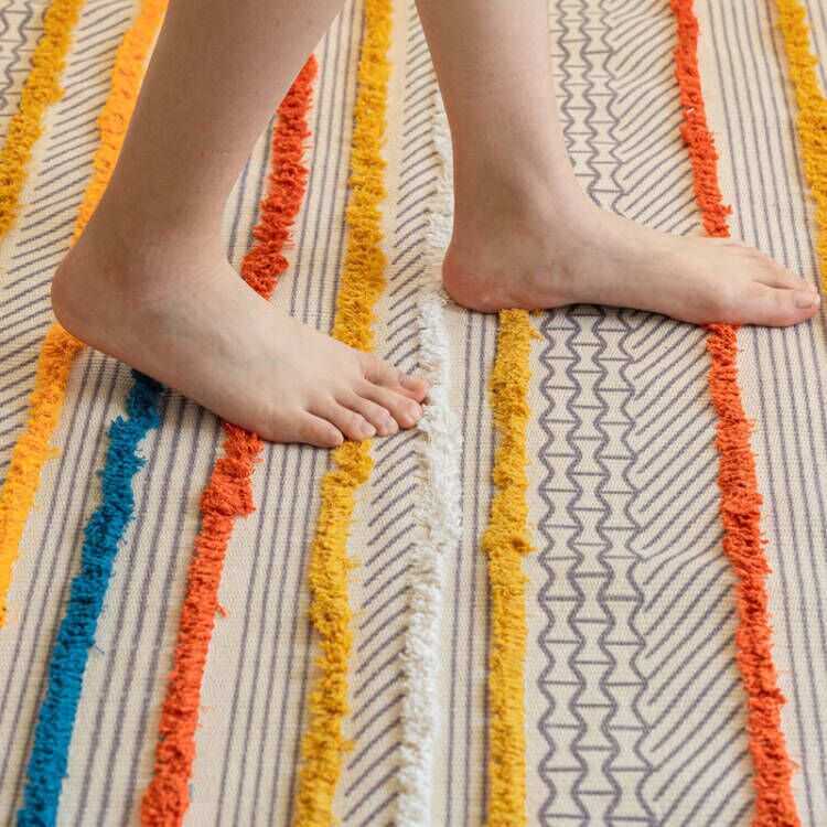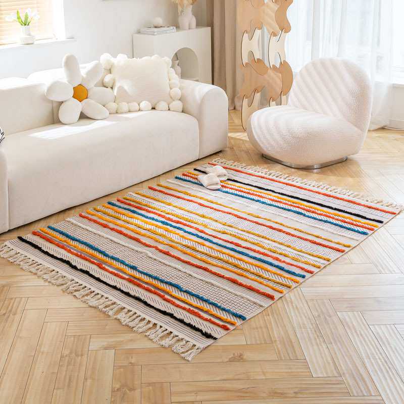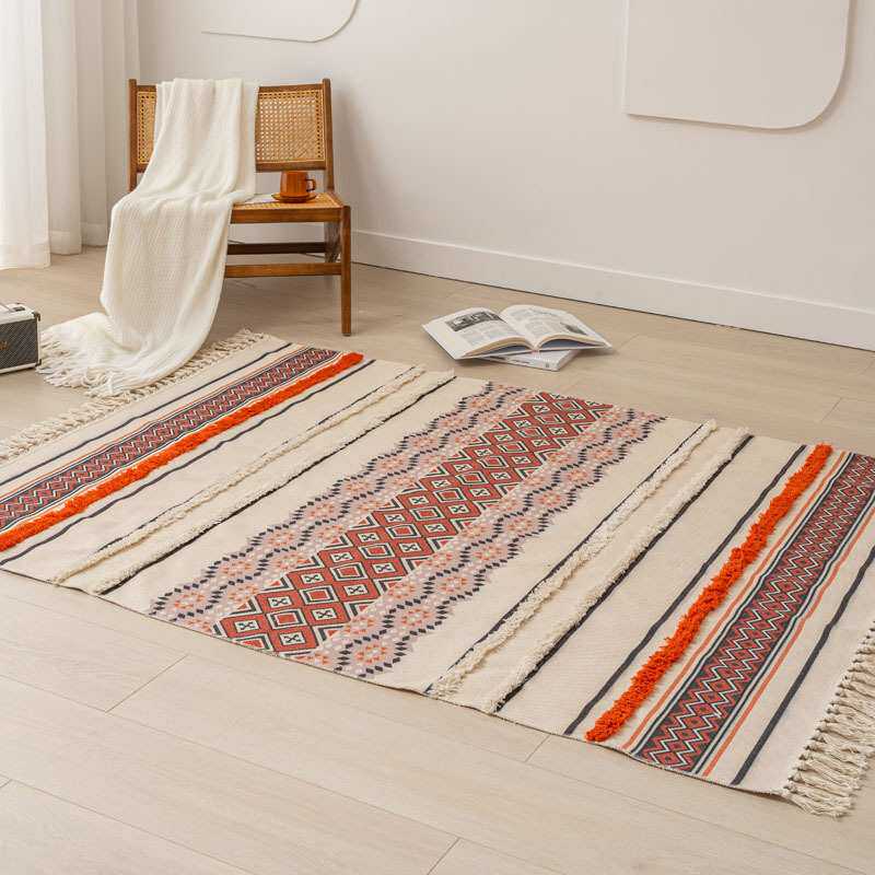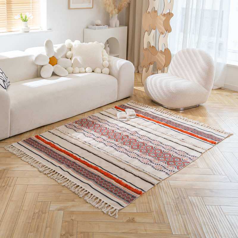 外贸跨境棉麻几何簇绒地垫客厅沙发茶几卧室床边地毯多功能可机洗