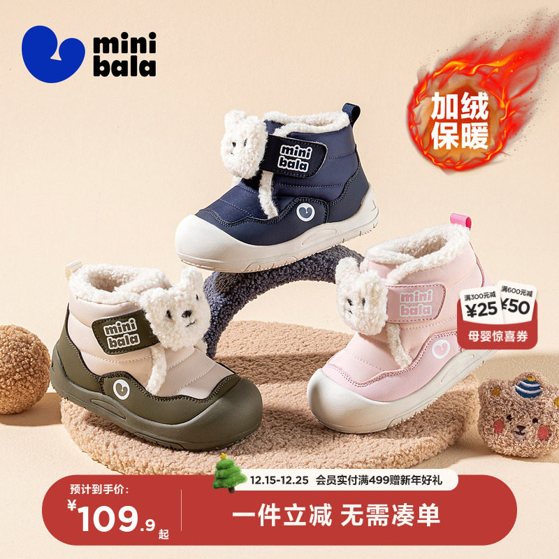 迷你巴拉冬加绒保暖【小熊】新款宝宝学步鞋女童棉靴中帮男童棉鞋